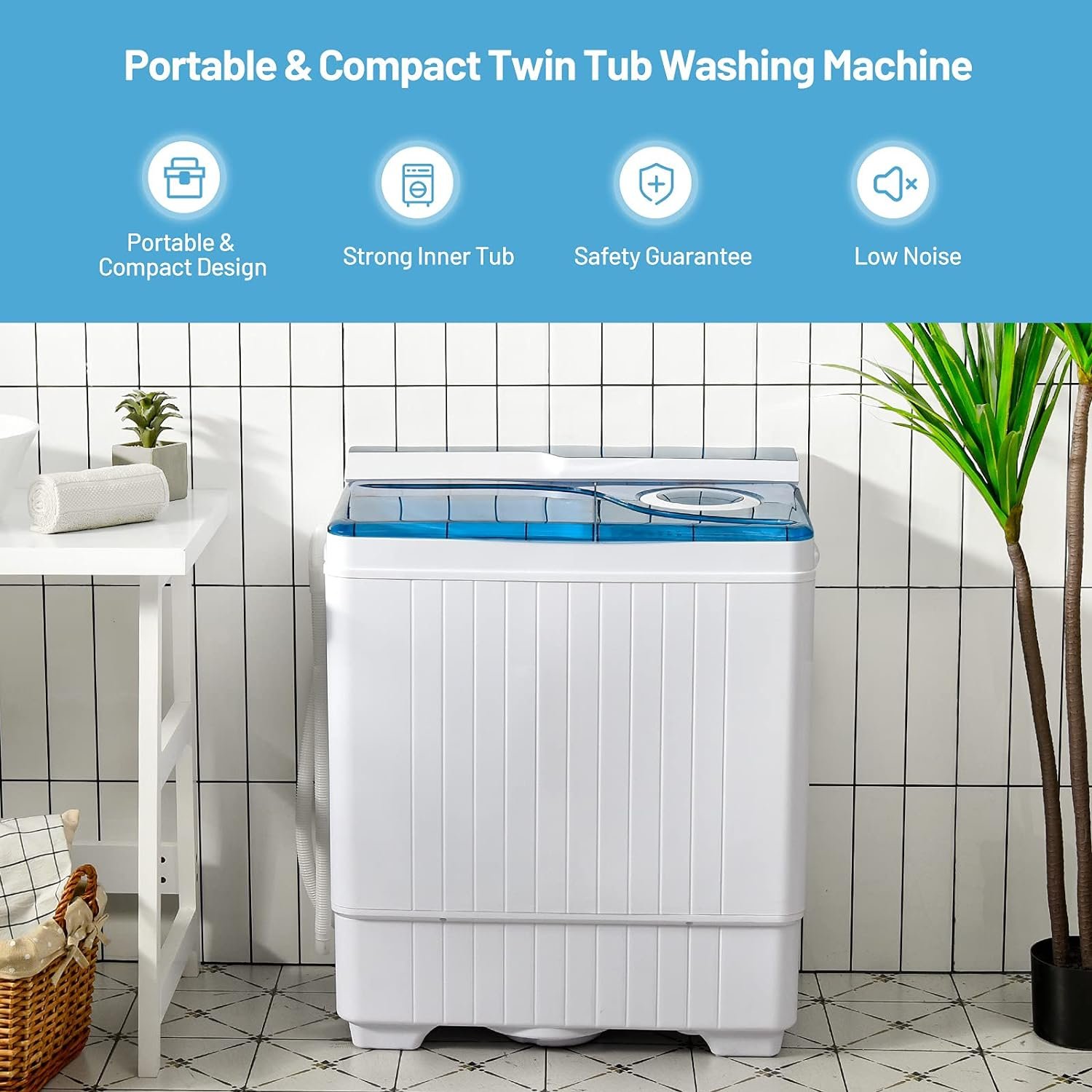 [2-in-1 Design for Convenience]: Our practical washing machine comes with two tubs, which means you can make different settings for washing and spinning. Besides, the washing and dehydration function can be used simultaneously, providing much convenience for your daily use. This 2-in-1 machine saves space and money for an extra dehydrator.