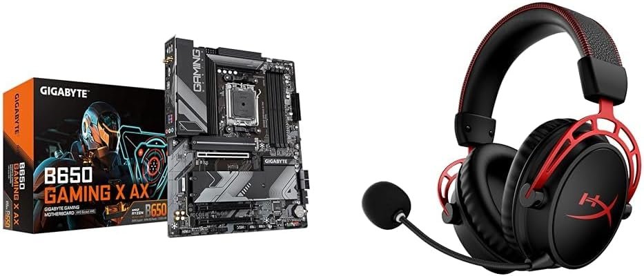 GIGABYTE B650 Gaming X AX (AM5/ LGA 1718/ AMD/ B650/ ATX) & HyperX Cloud Alpha Wireless – Gaming Headset for PC, 300-hour Battery Life, DTS Headphone:X Spatial Audio
