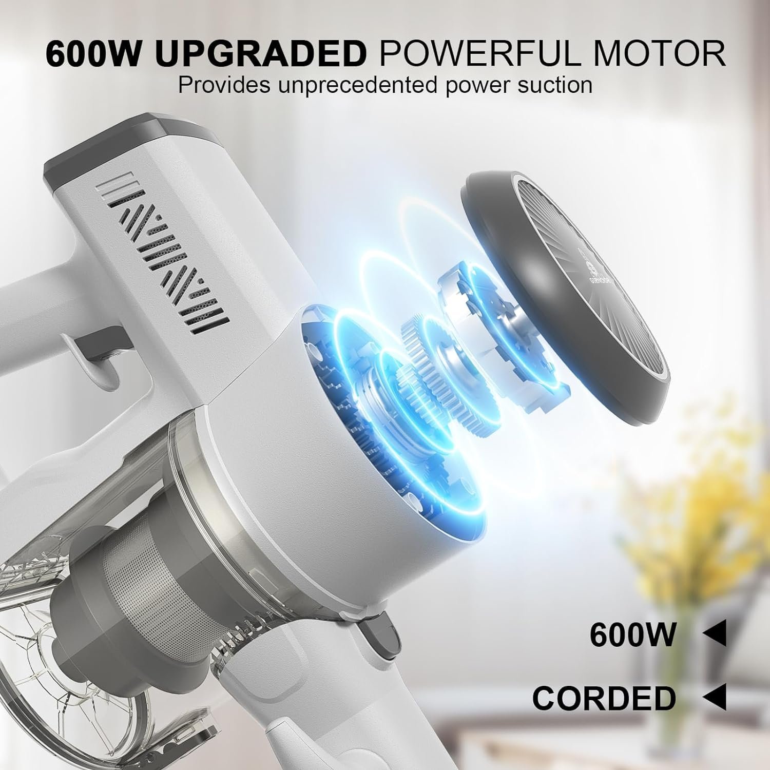 4-Layer Deep Filtration System: With the advanced 4-stage HEPA filtration system, our corded vacuum creates a new level of cleanliness. It not only captures large particles but also traps micro dust as small as 0.7um. Its cyclone technology reduces bulk and prevents obstructions, ensuring that only clean air flows through the turbine.