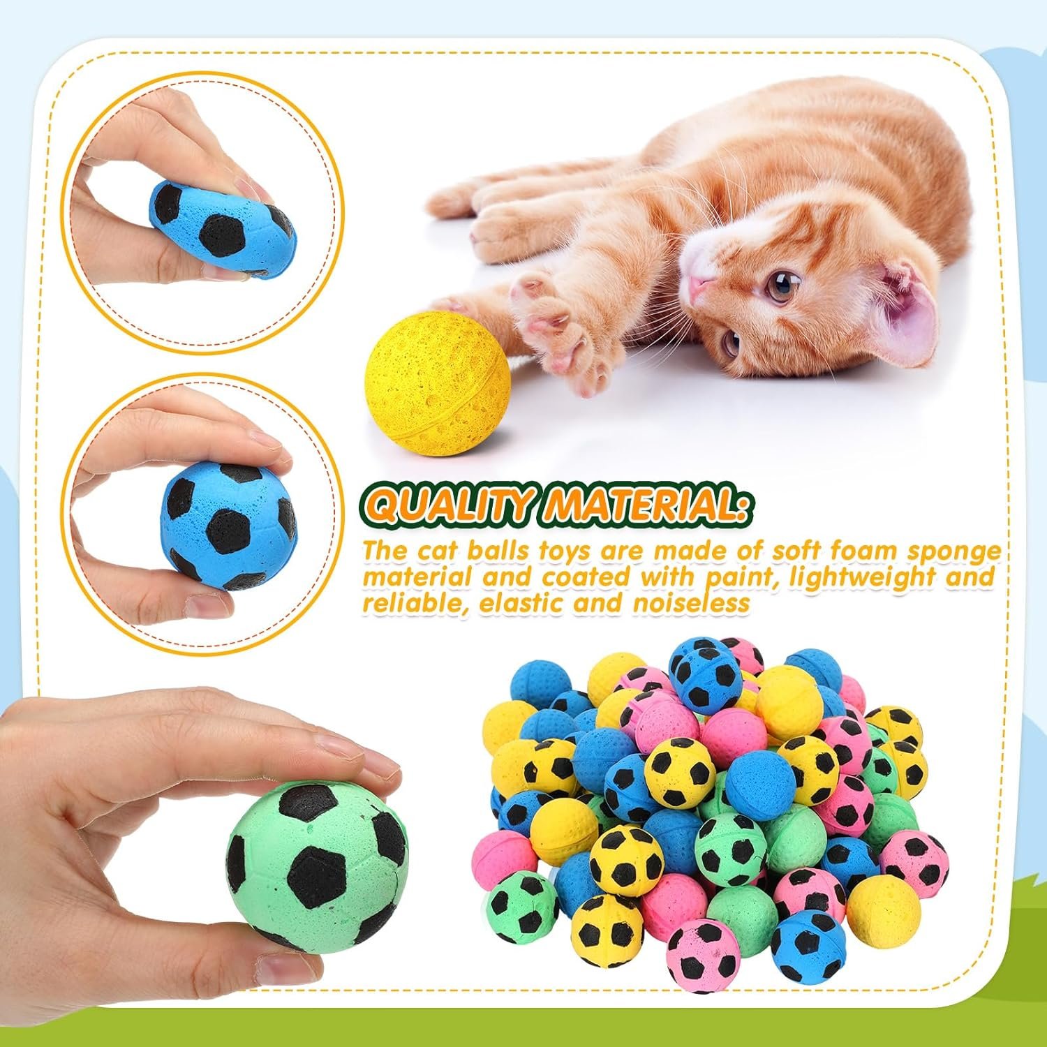 Generous Quantity and 2 Styles: you will receive 72 pieces of cat foam balls, in golf and soccer 2 styles, 36 pieces each, 4 colors each, measuring about 1.77 inches/ 4.5 cm in diameter; Sufficient quantity and rich styles ensure that your feline friend will run out of toys to chase and bat, catering to your sharing needs with family members or partners with pets