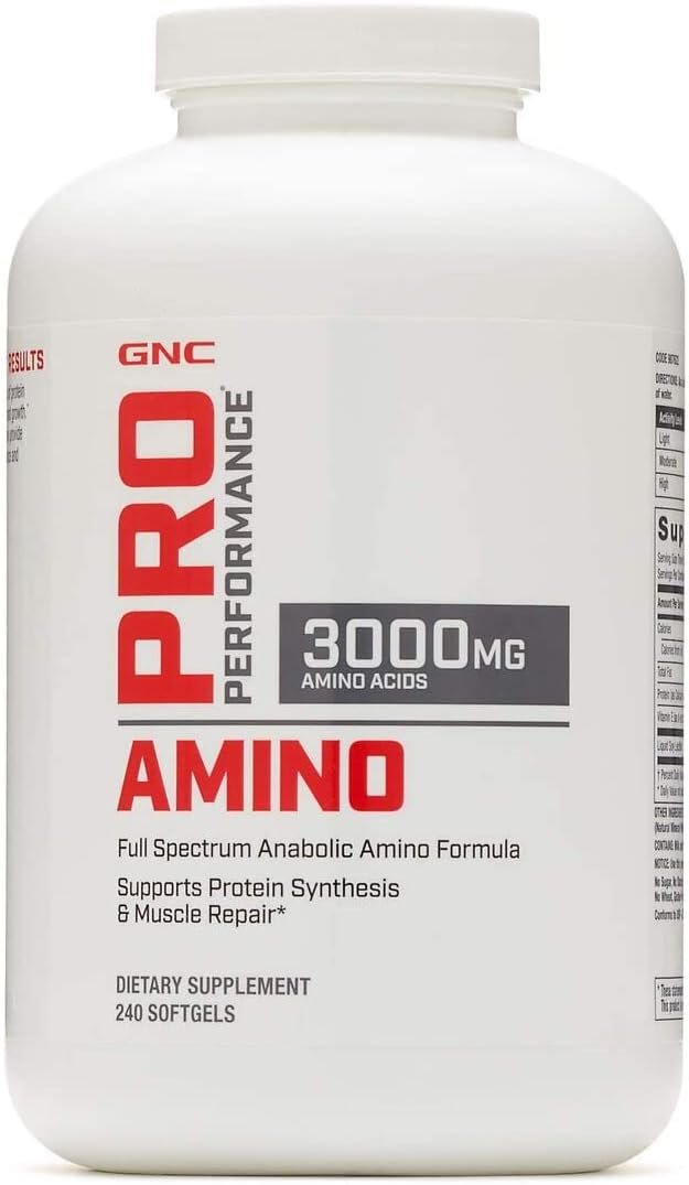 GNC Pro Performance Amino: Helps To Repair Muscles GNC Pro Performance Amino softgels contain a full spectrum of anabolic amino acids required to help muscle growth and repair. Of the 20 amino acids necessary for health and well-being, 9 are classified as essential and are not produced naturally by your body. Therefore, if you want to boost the essential amino acids you get from your diet, a supplement like GNC Pro Performance Amino is a smart choice. Lack of the essential amino acids in the