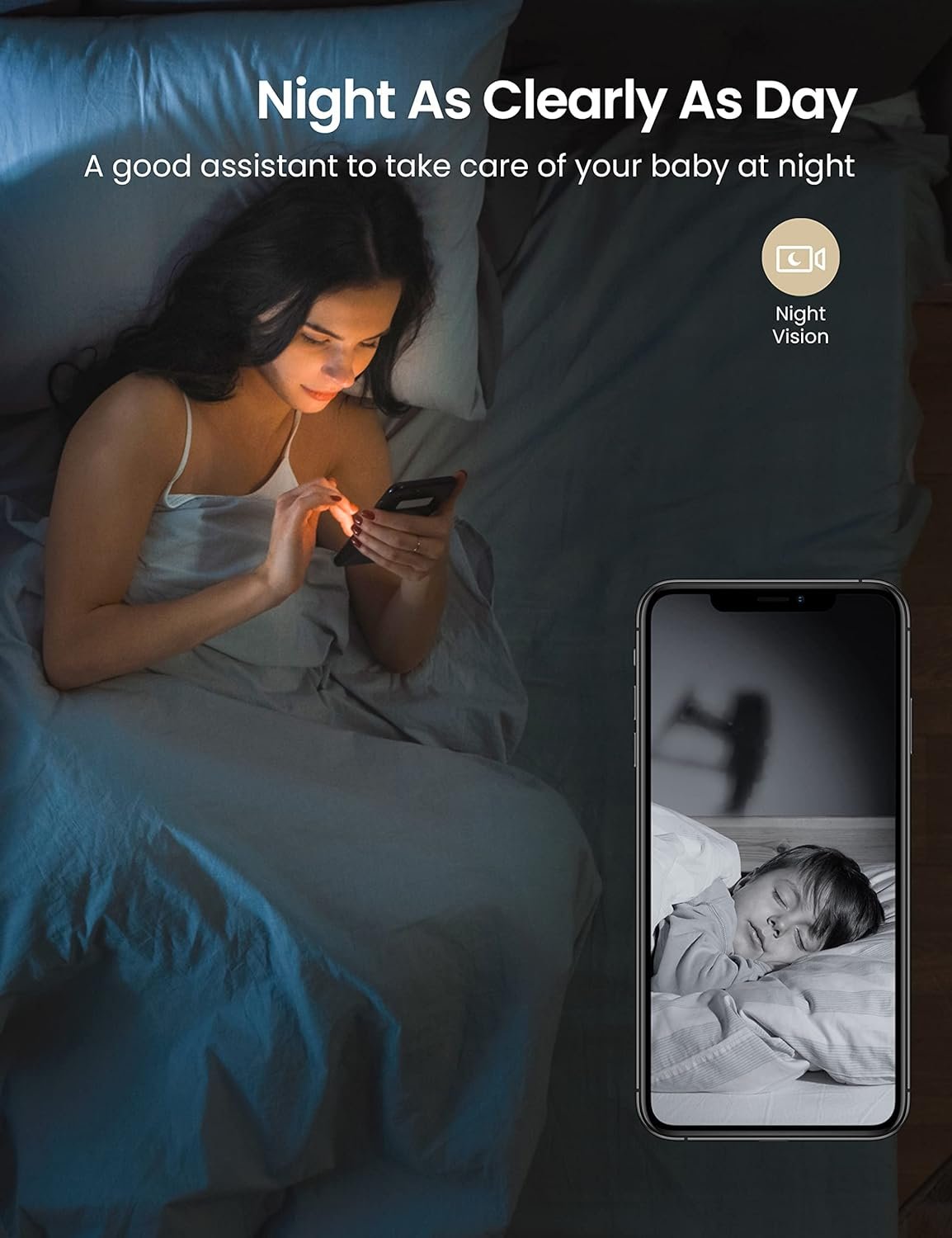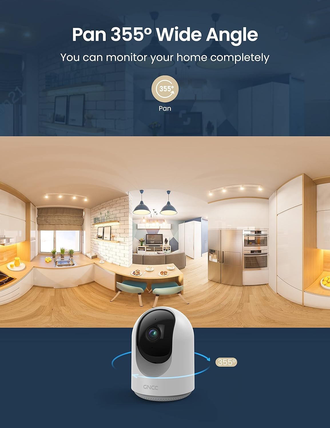 ✔️[Pan/Zoom & Super Clear Night Vision] GNCC indoor camera have a wide-angle lens combined with a large-scale horizontal rotation to create a complete 360° coverage. Intelligent IR Led provides you with clear black and white images in the dark up to 5 meters away