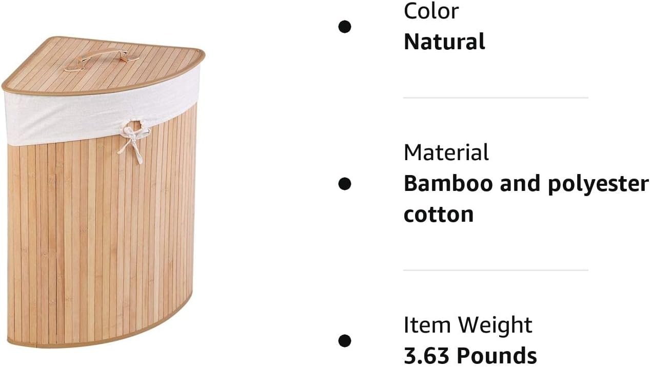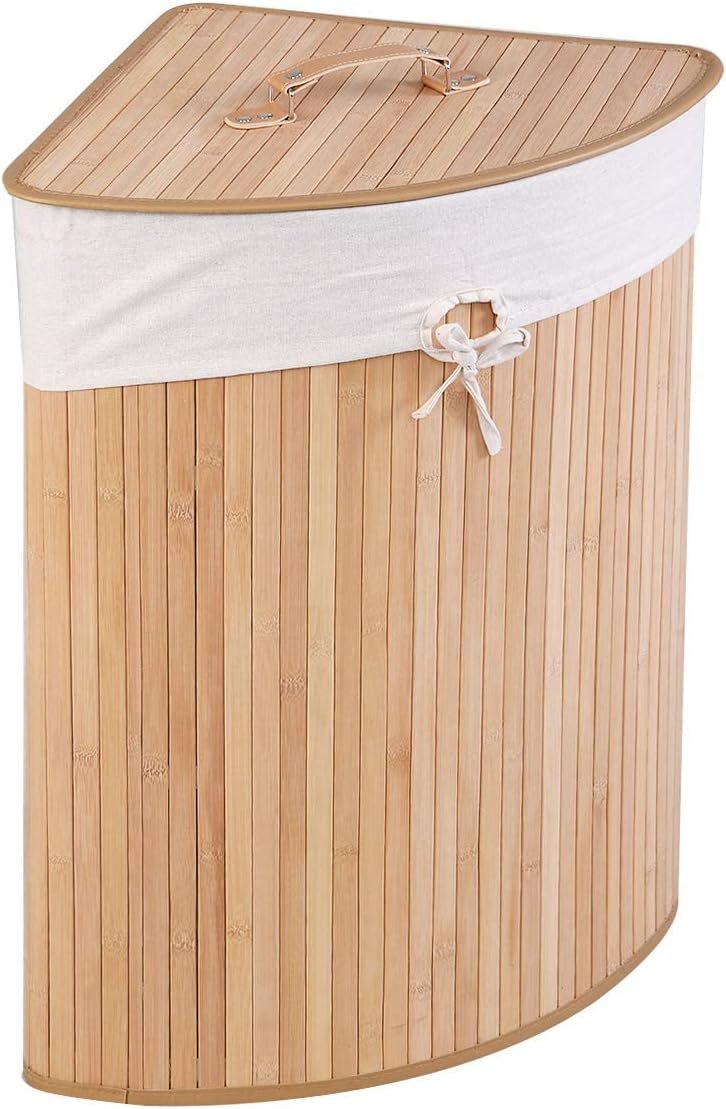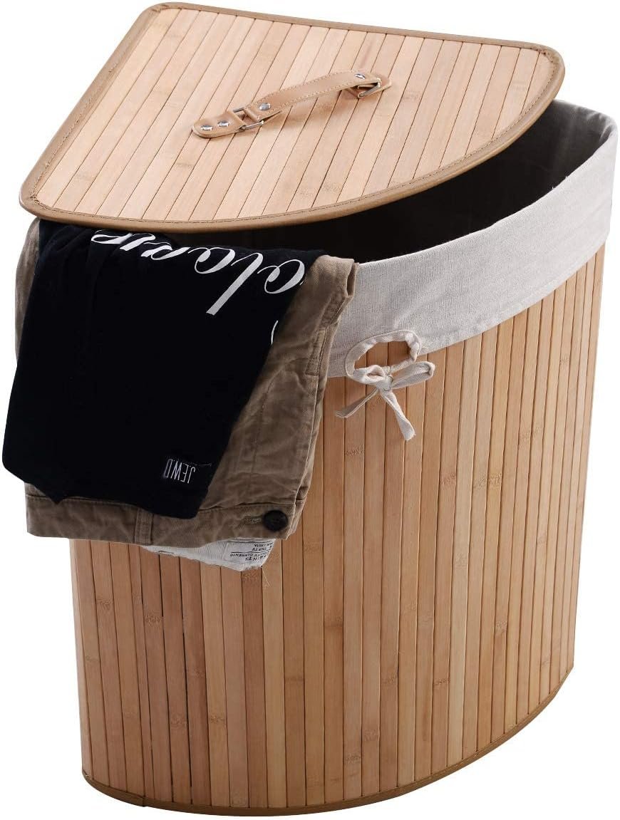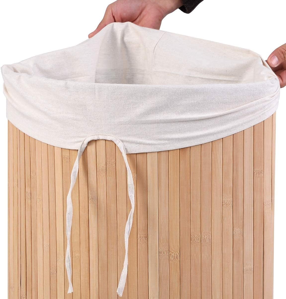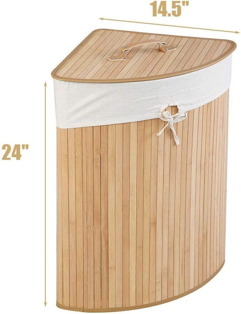 GOFLAME Corner Bamboo Laundry Hamper with Lid and Removable Liner, Washing Clothes Basket Storage Bin with Handle, Suitable for Bedroom, Bathroom, Laundry (Natural)