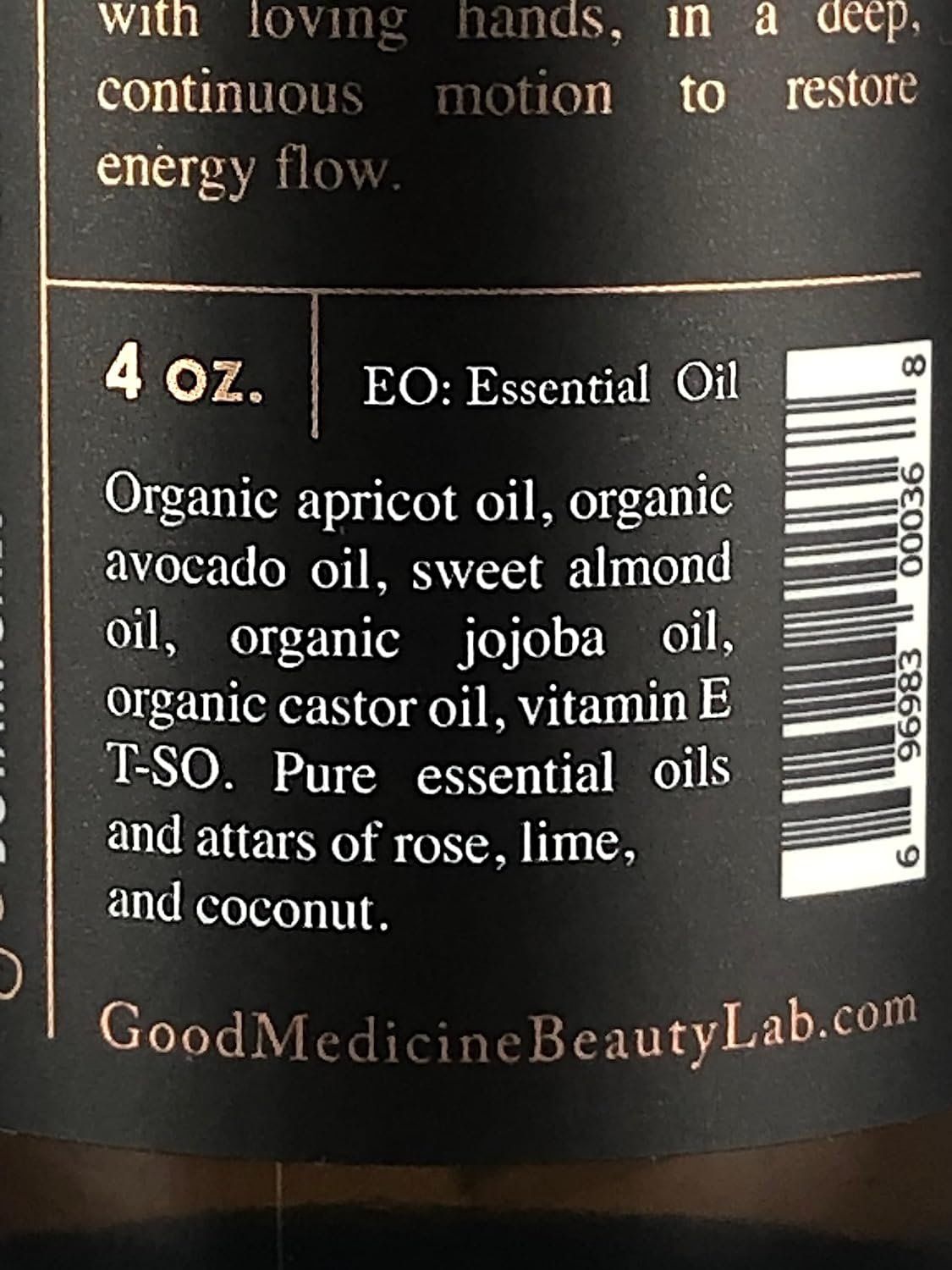 ✔️ HOW TO USE: After a warm bath or shower, while the skin is still damp, apply a generous amount of body oil to the entire body. Breathe deeply into the sweet aroma of rose, lime and coconut and to uplift the spirit and calm the mind. Use it to massage, with loving hands, in a deep continuous motion to restore energy flow.