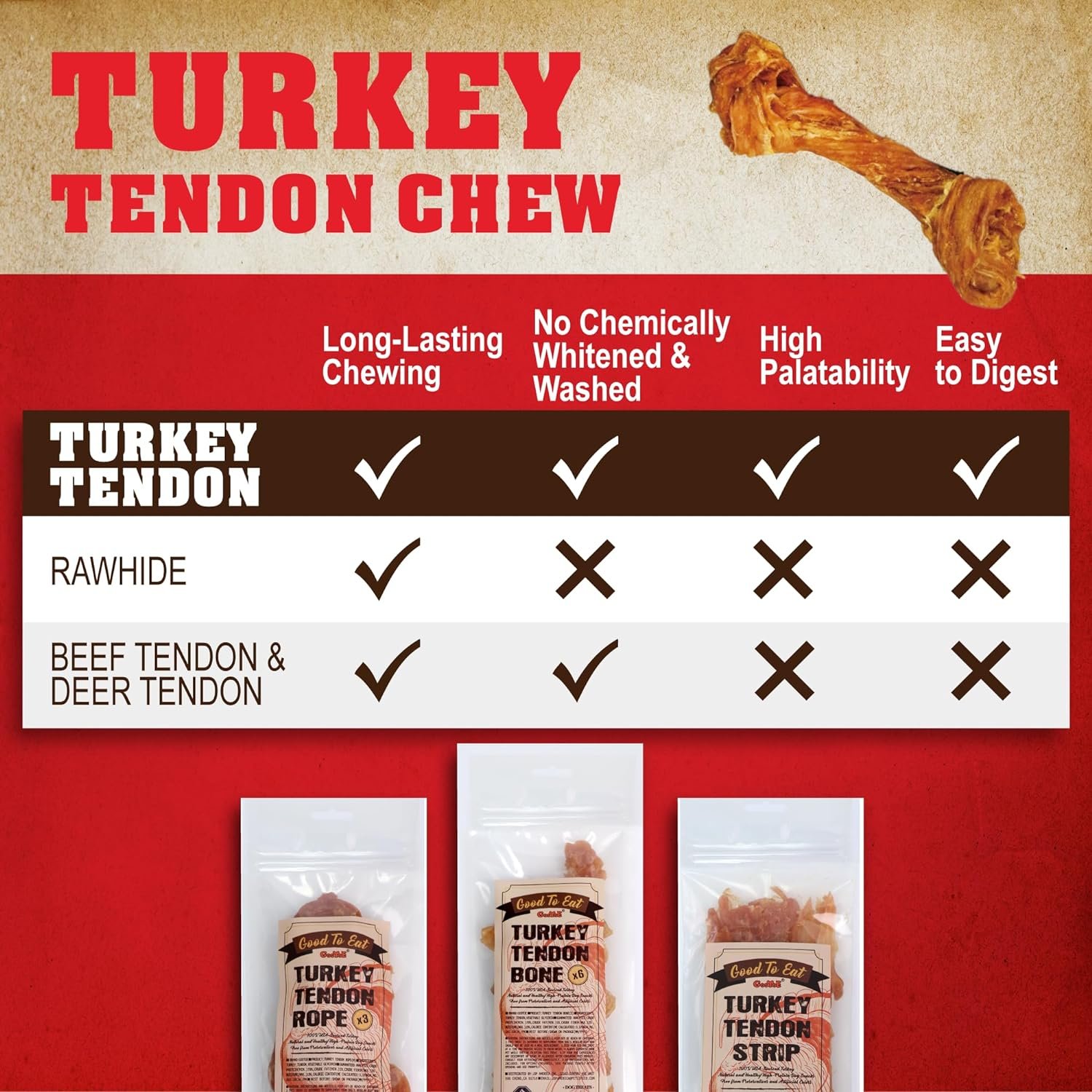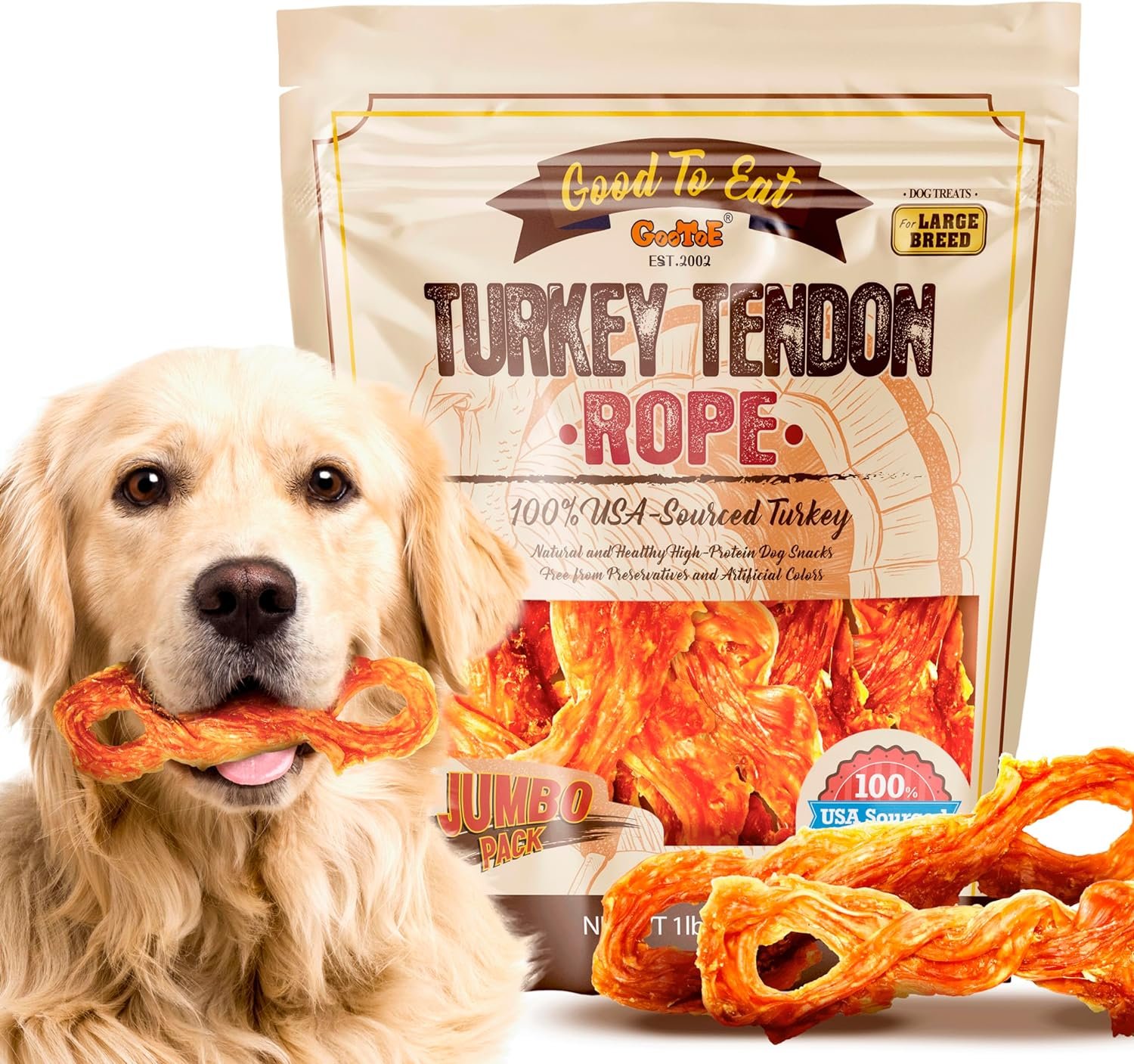 100% US-Sourced Turkey: GooToE turkey tendon dog treats are made entirely from premium US-sourced turkey, a commitment to the highest standards of quality and taste.