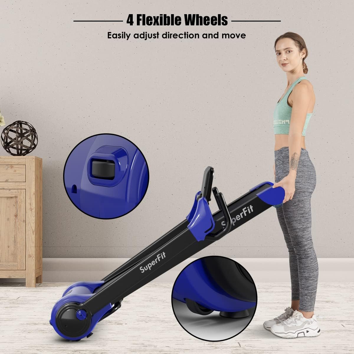 No Assembly Requirement & Easy to Store — The integrated installation-free design greatly simplifies the installation process. Besides, the folding and compact design makes the treadmill easy to store. 4 built-in flexible wheels facilitate movement from one rooms to rooms.