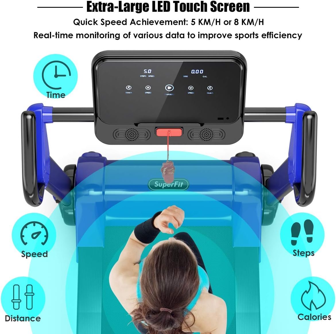 Extra-Large LED Touch Display & Safety Guarantee — The large LED display provides clear data, and you can monitor speed, time, steps, distance and calories in real time. There are also safety issues that should be of greatest concern during exercise. In order to ensure the safety of sports enthusiasts, we have equipped you with a safety lock.