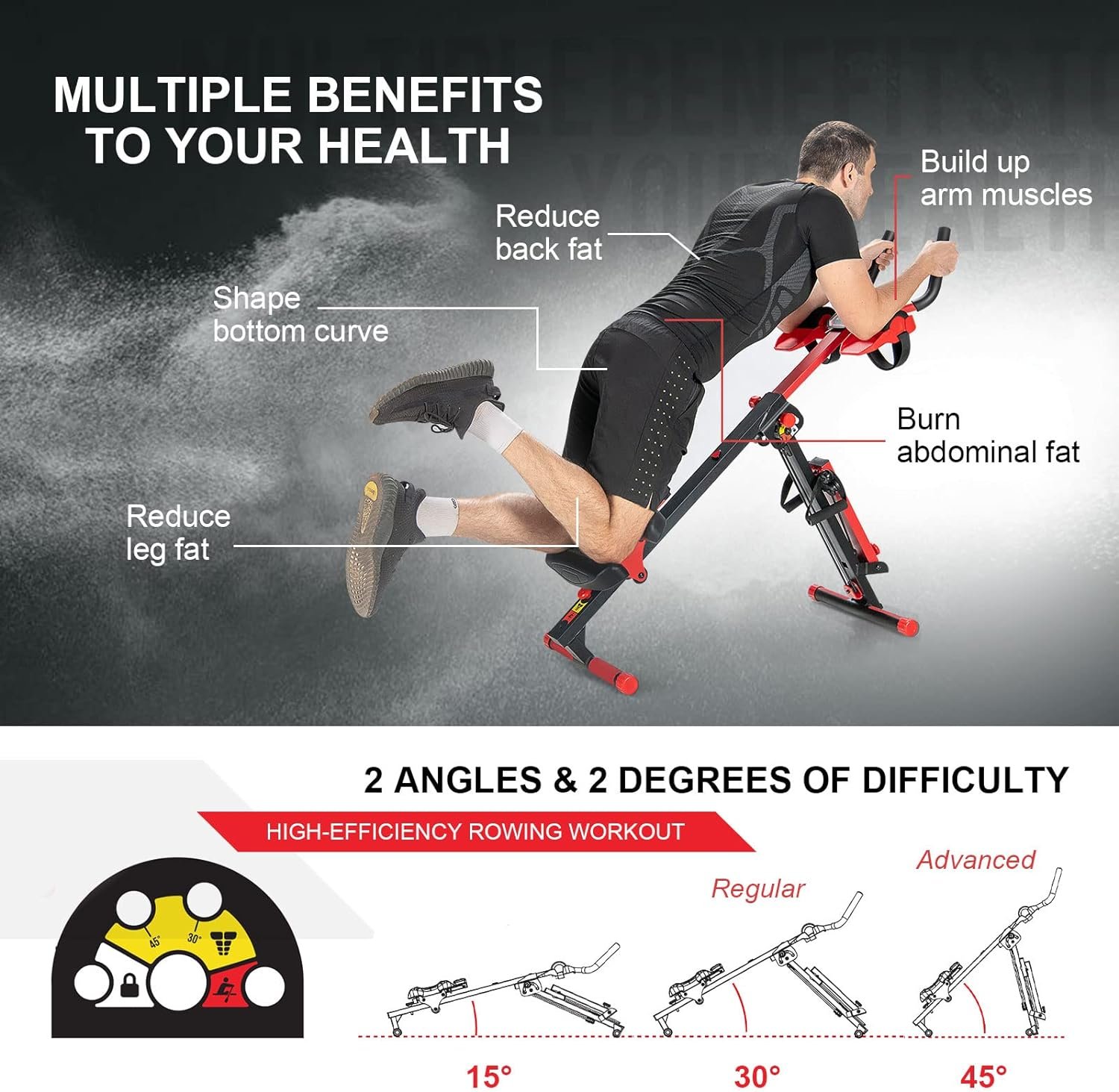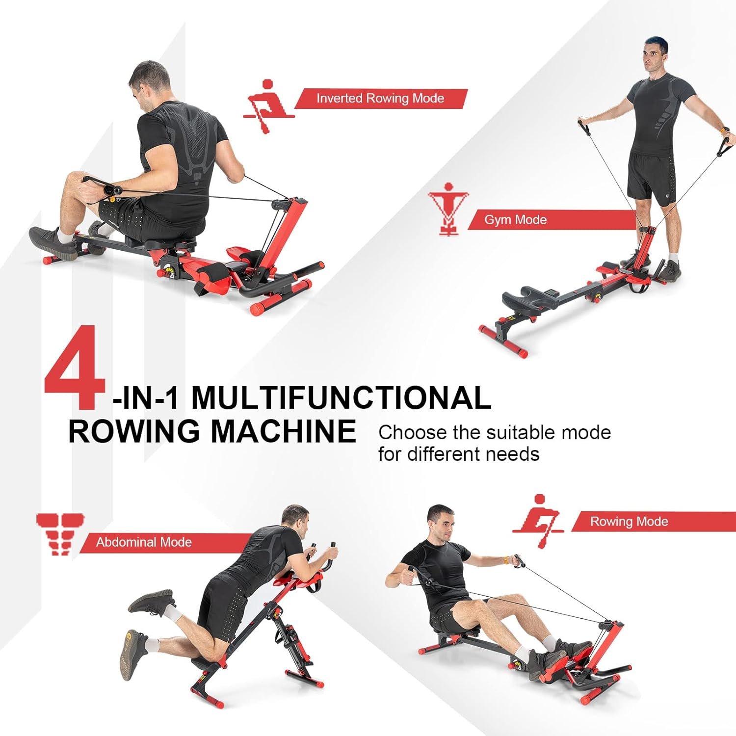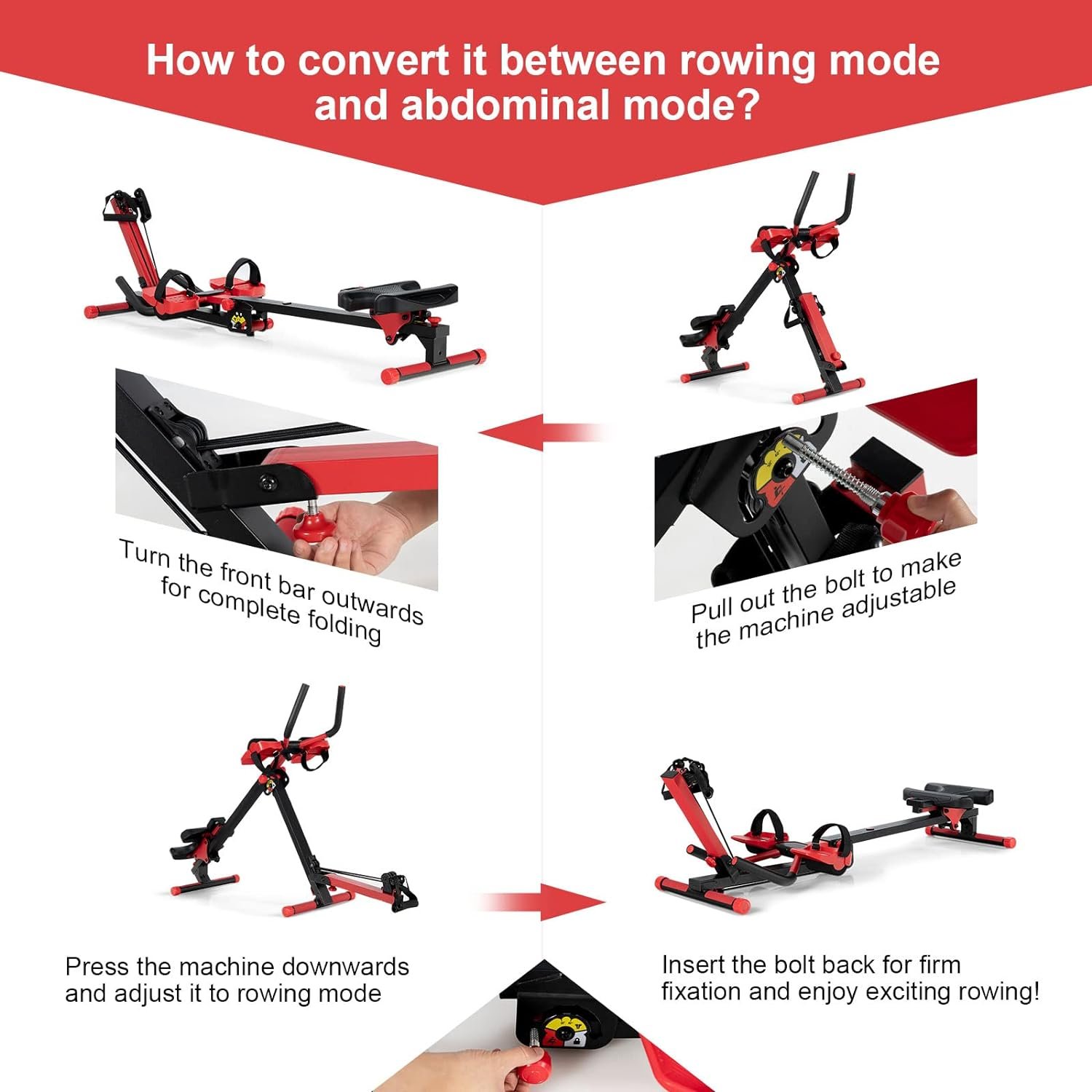 【4-in-1 Rowing Machine & AB Machine】 This ab machine combines rowing mode, abdominal mode, gym mode and inverted rowing mode, which allows you to choose your favorite method for fitness and attain effective fitness experience. It can help your full body workout, including multiple muscle groups of arms, back, abs, hips and legs.