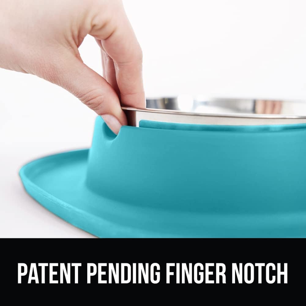 BUILT TO LAST: durably designed silicone mat and stainless steel bowls are built to last; a convenient finger notch provides easy access to the dishes, making it simple to access and remove the bowls when filling with food or during cleaning