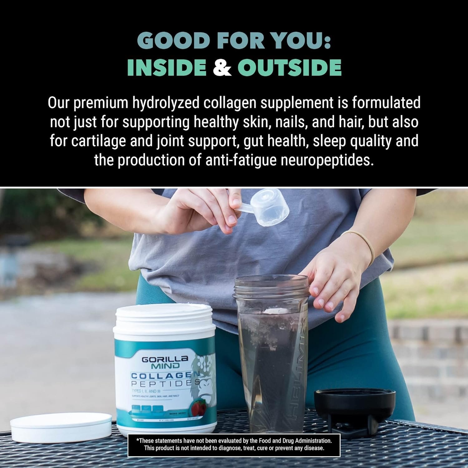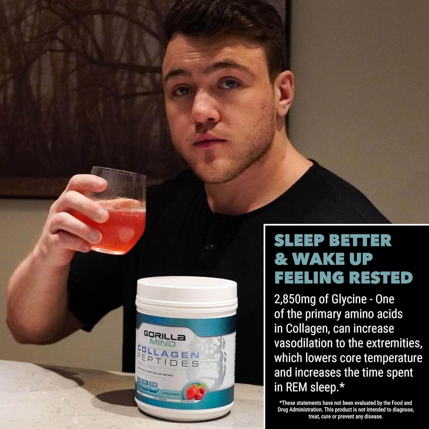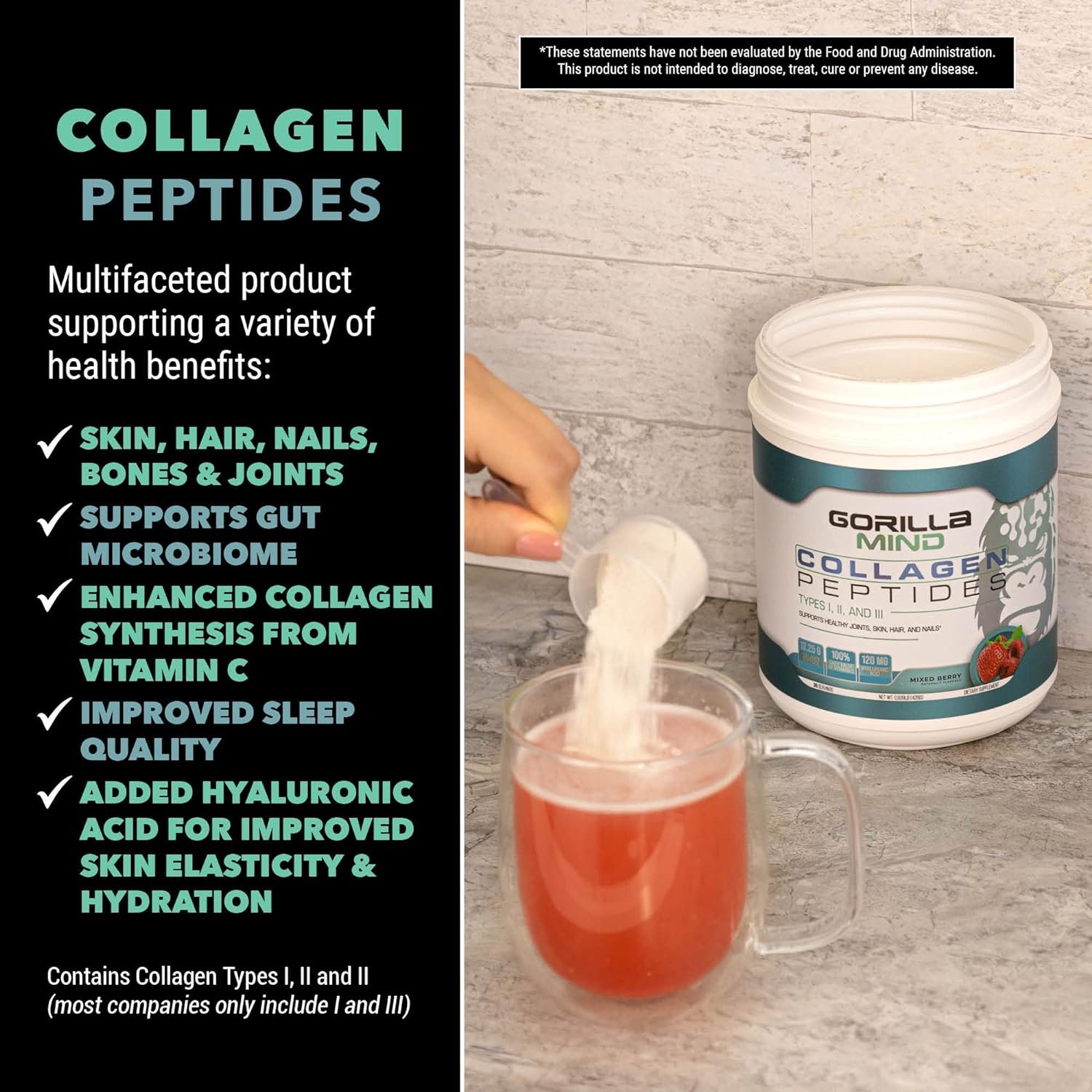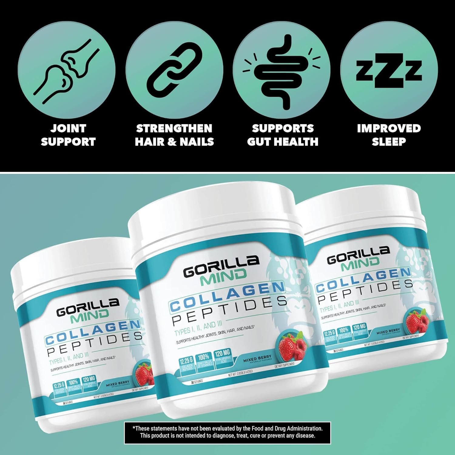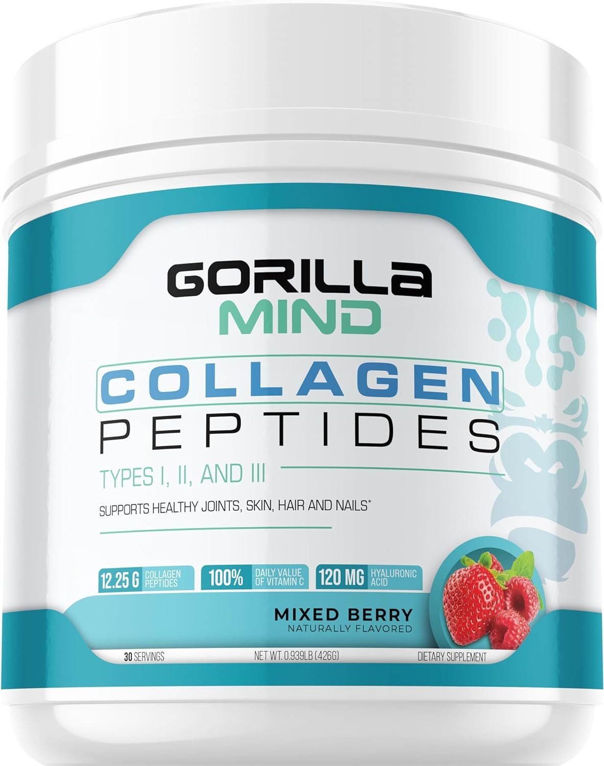 Gorilla Mind Collagen Peptides Powder – Joint & Bone Health/Great for Hair, Skin & Nails/Sleep Support/Types I, II, III/Mix in Water, Juice or a Smoothie – 426g (Mixed Berry)
