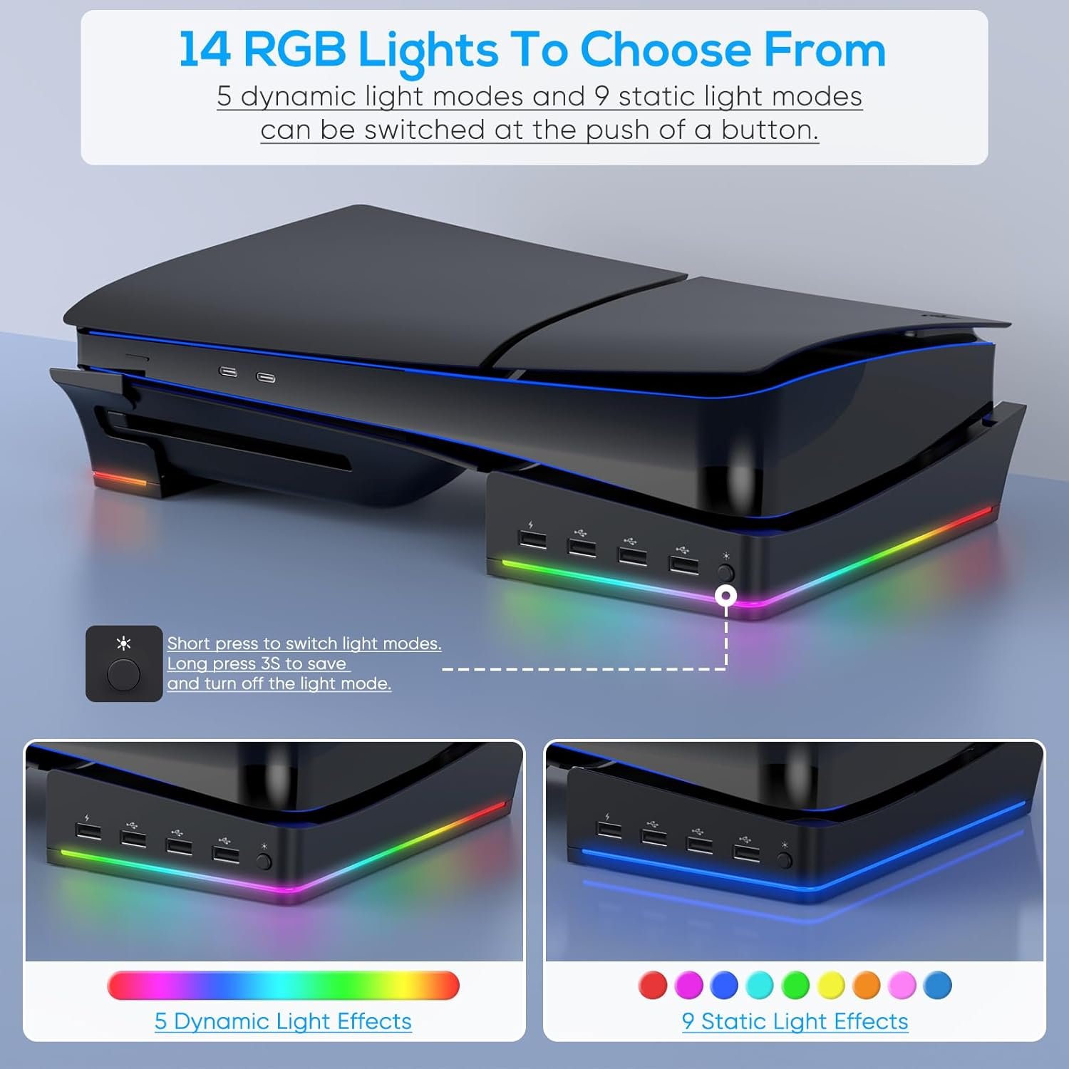 Gorixer RGB Horizontal Stand for PS5 Slim Console with 4 USB Hubs, Black