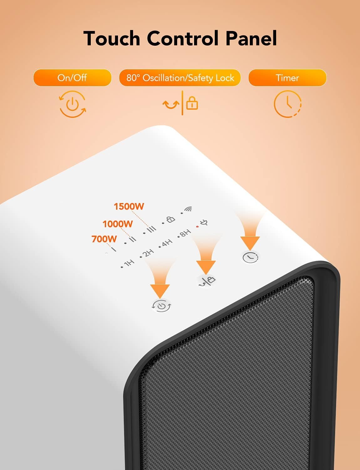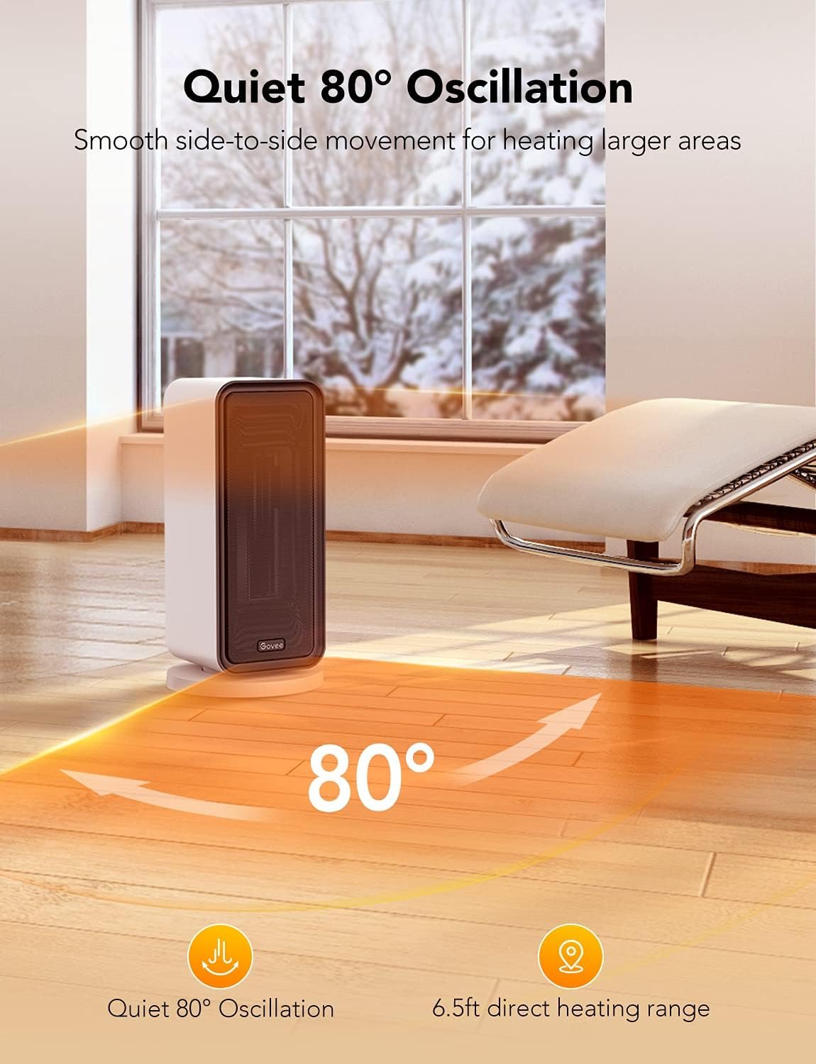 Variety of Features: Smart heater for 80° oscillation, timer, safety lock, Do Not Disturb, 2 prong plug, 6ft power cord, handle, and more. Suitable for indoors, living rooms, bedrooms, offices, and other spaces. (Note: screwdriver not included)