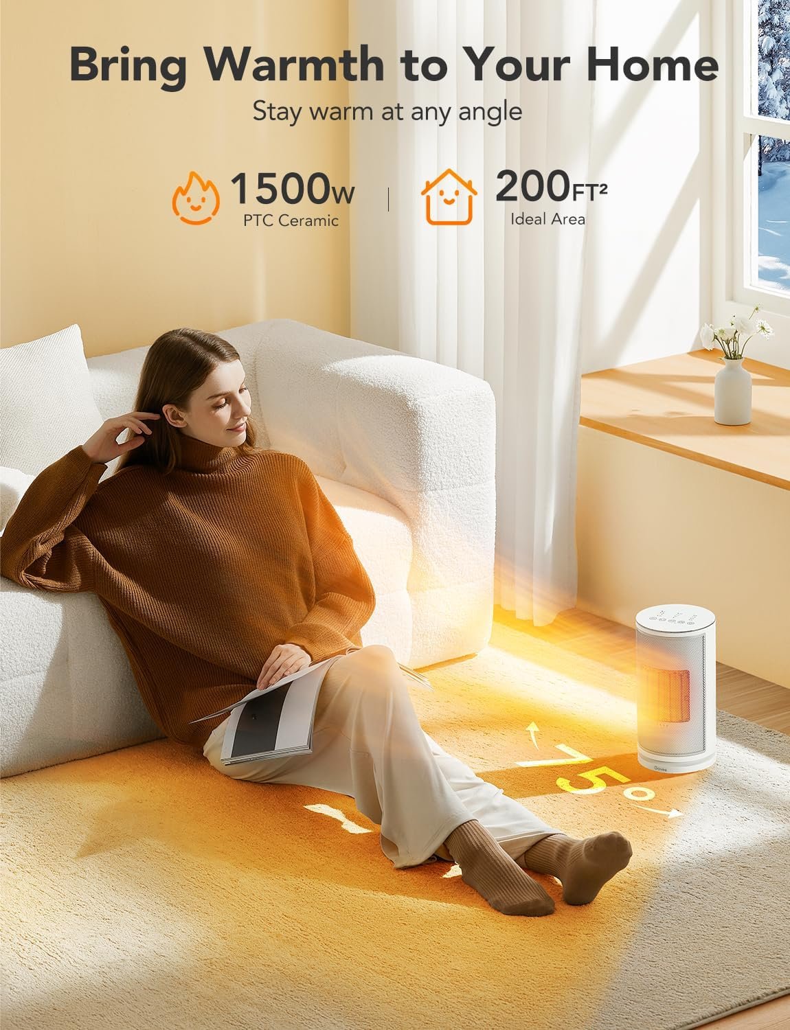 4 Heating Mode & Fan Mode: The small heater rapidly heats up within 2 seconds with PTC ceramic heating, a more energy-efficient technology. Variety of working modes to meet your different needs. Smaller than the tower heater but just as powerful.