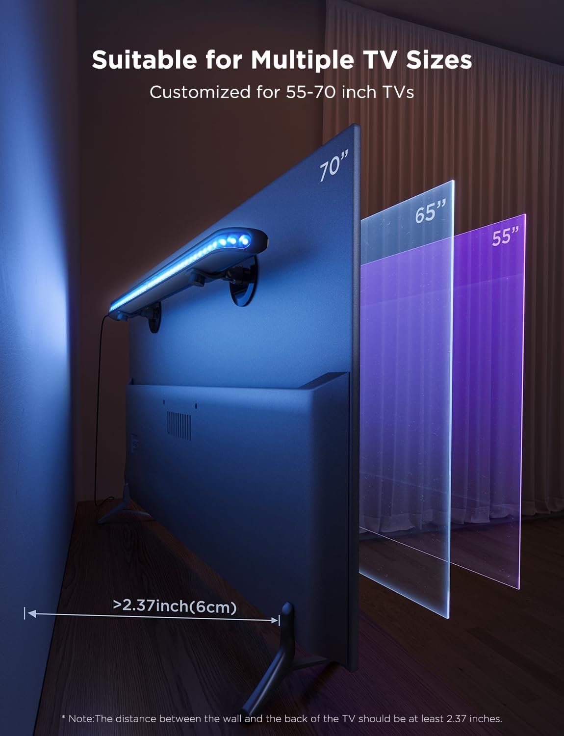 Suitable for Multiple TV Sizes: The TV light bar is suitable for TVs from 55 to 70 inches. You can use the adhesive backing to attach the light bar to the back of the TV or place it on a base to sit flat on the TV cabinet.