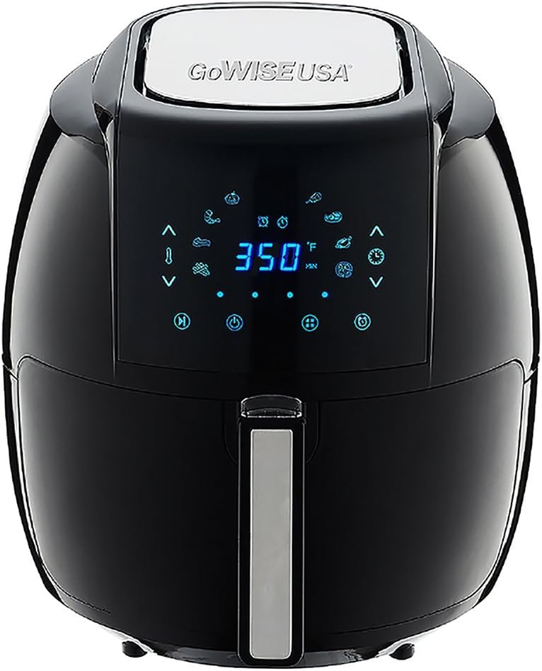 GoWISE USA GWAC22003 5.8-Quart Air Fryer with Accessories, 6 Pcs, and 8 Cooking Presets + 100 Recipes (Black), Qt