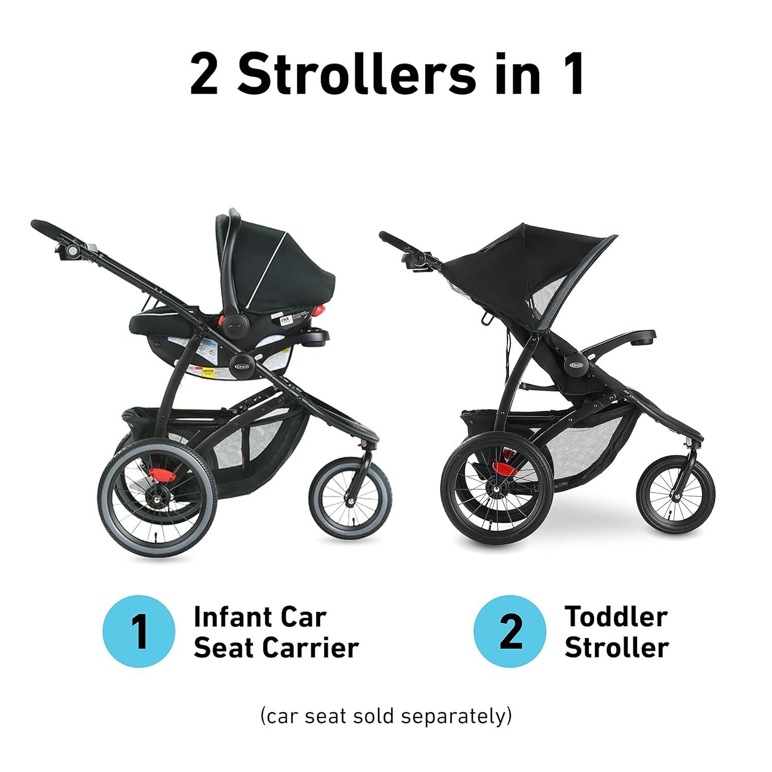 The Graco® FastAction™ Jogger LX features a one-second, one-hand fold, giving ultimate convenience to parents on the go. This crossover stroller combines all the comfort and convenience features of a traditional jogging stroller, while being compact and easy to fold. The jogger stroller has a removable seat pad that converts the stroller into a lightweight infant car-seat carrier. The FastAction™ Jogger LX is loaded with plenty of features, including a child’s tray, parent’s tray, and height-adjustable handle. Click Connect™ technology allows for a one-step, secure connection of infant car seat to stroller.