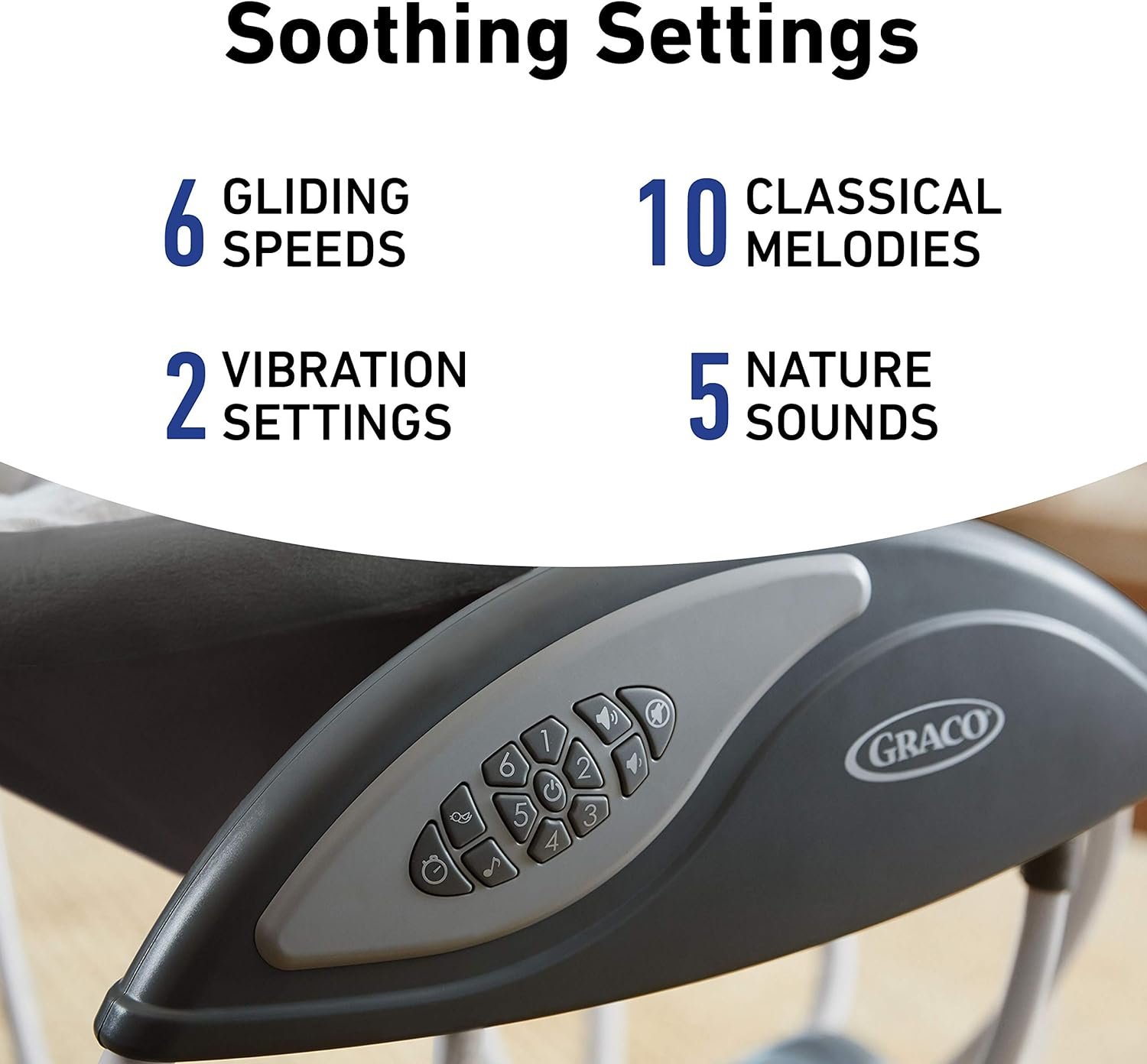6 gliding speeds allow you to find the right pace to suit baby’s mood