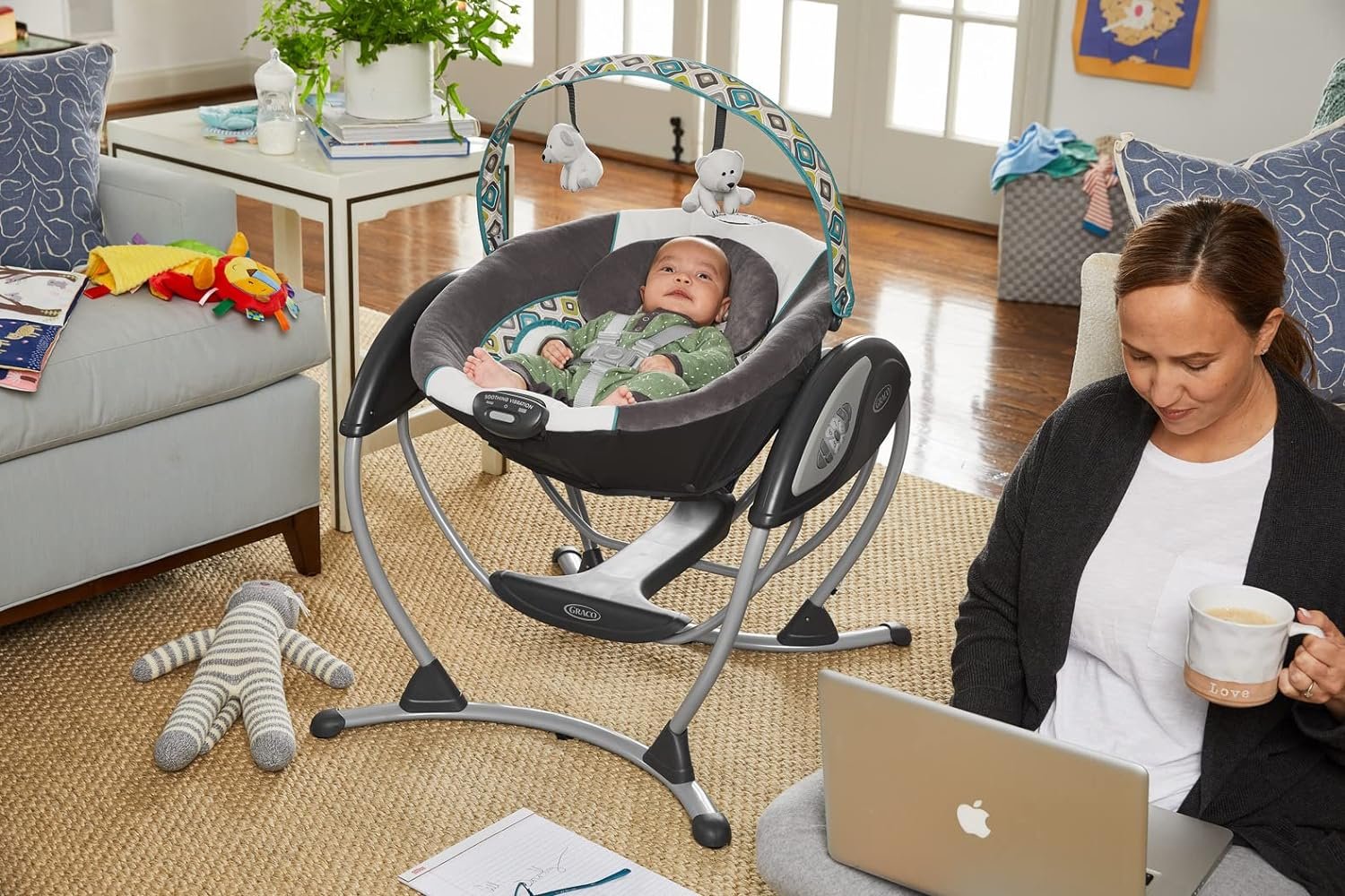 Soothes with the same gentle motion you use when cuddling and comforting baby in your nursery glider