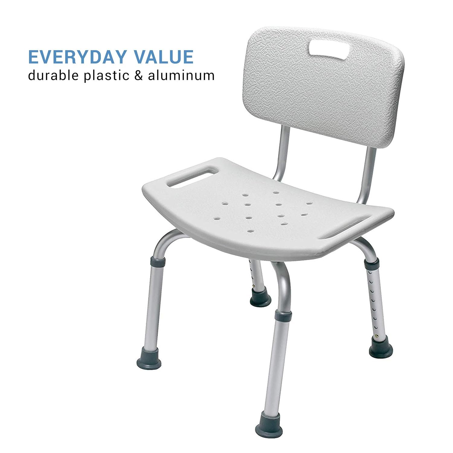 20″ WIDE SEAT: the 20 inch seat is extra-wide, supports up to 350 pounds, but is narrow enough to fit inside most bathtubs and showers. Overall Dimensions: 20 x 19 inches (W x D)
