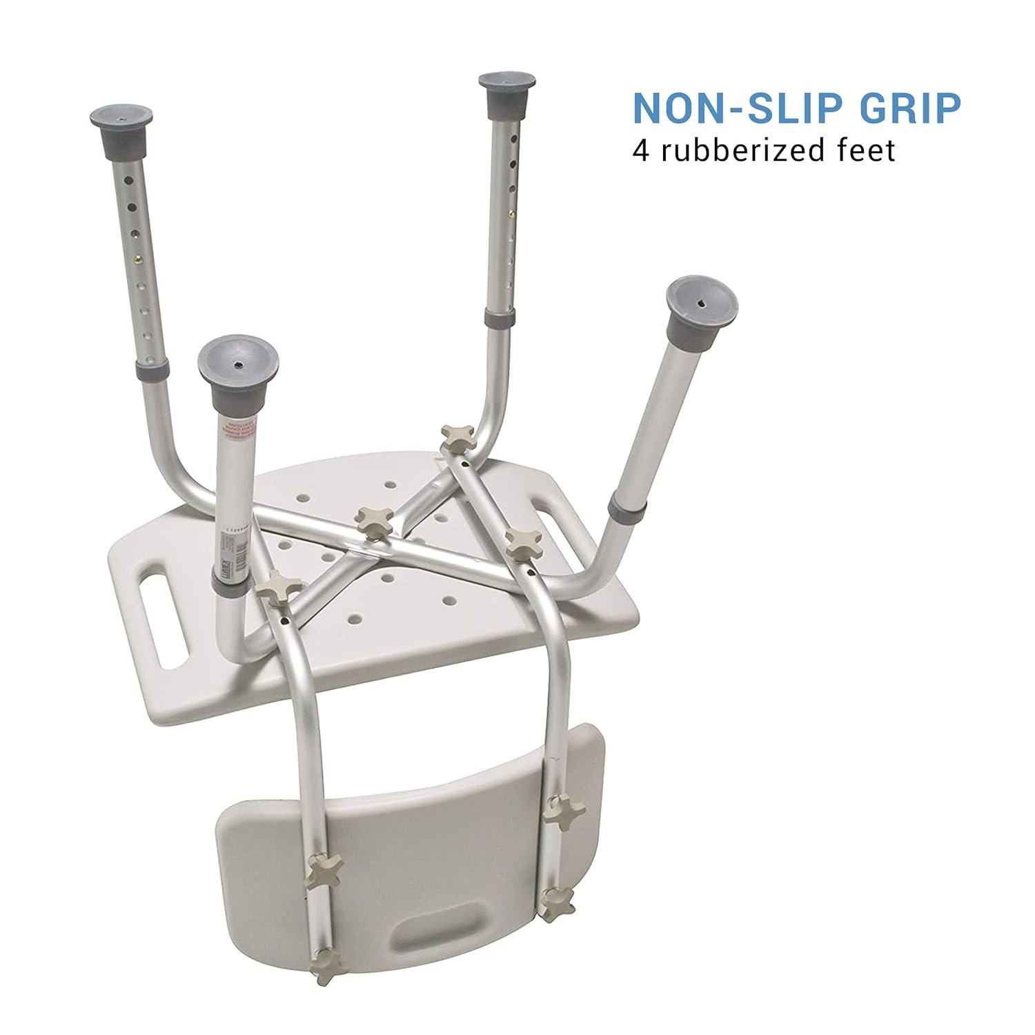 NON-SLIP FEET: 4 sturdy rubber feet ensure a strong grip on wet or dry bath tub surfaces and floors to limit slips and falls.