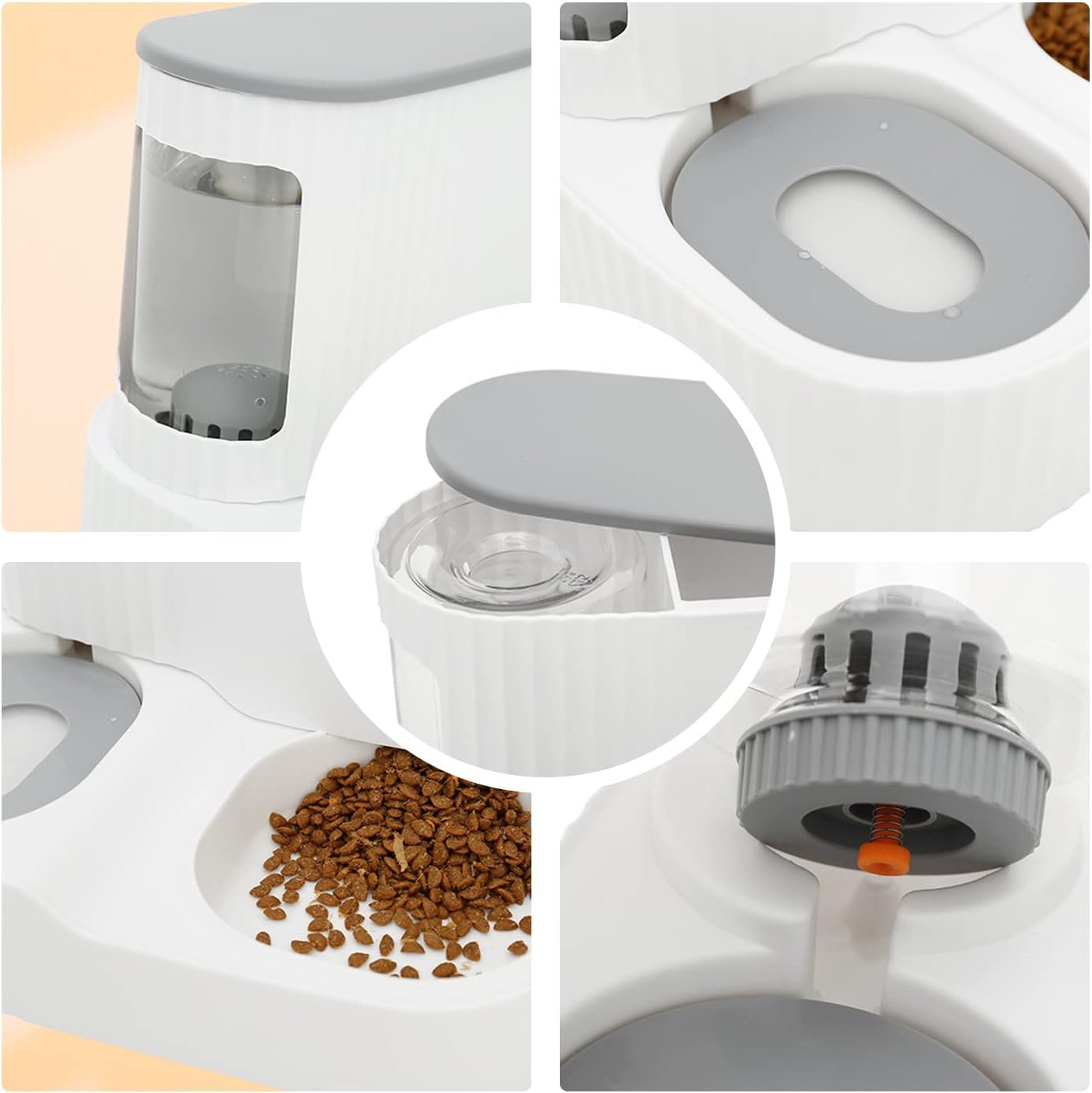 Sealed Lid and Visual Design: The lid on the top of the gravity feeder and waterer set maximizes the dryness of cat food and prevents spoilage. Both the automatic pet feeder and water dispenser are designed for visualization, allowing you to track the amount remaining.