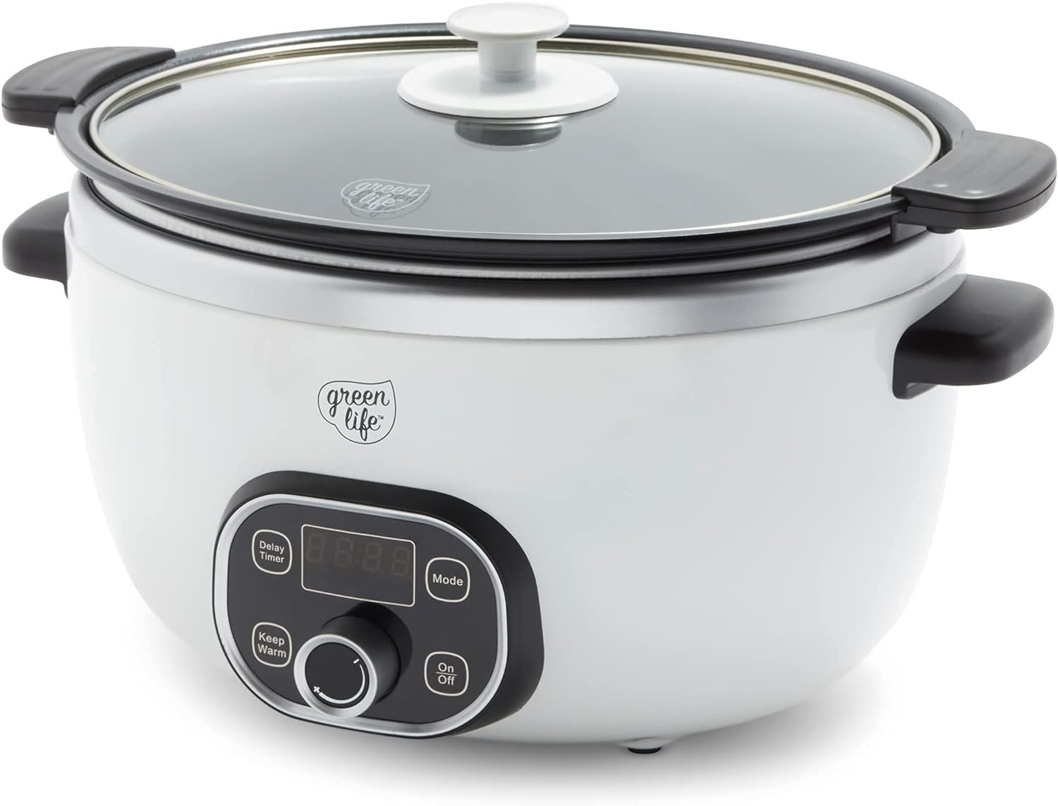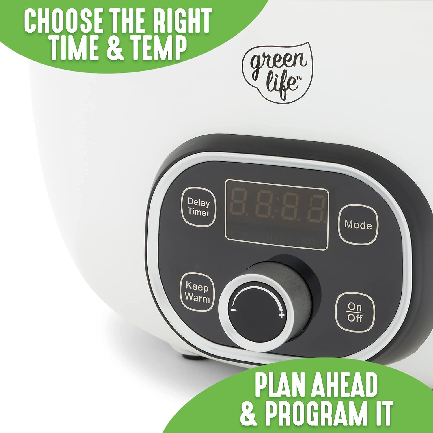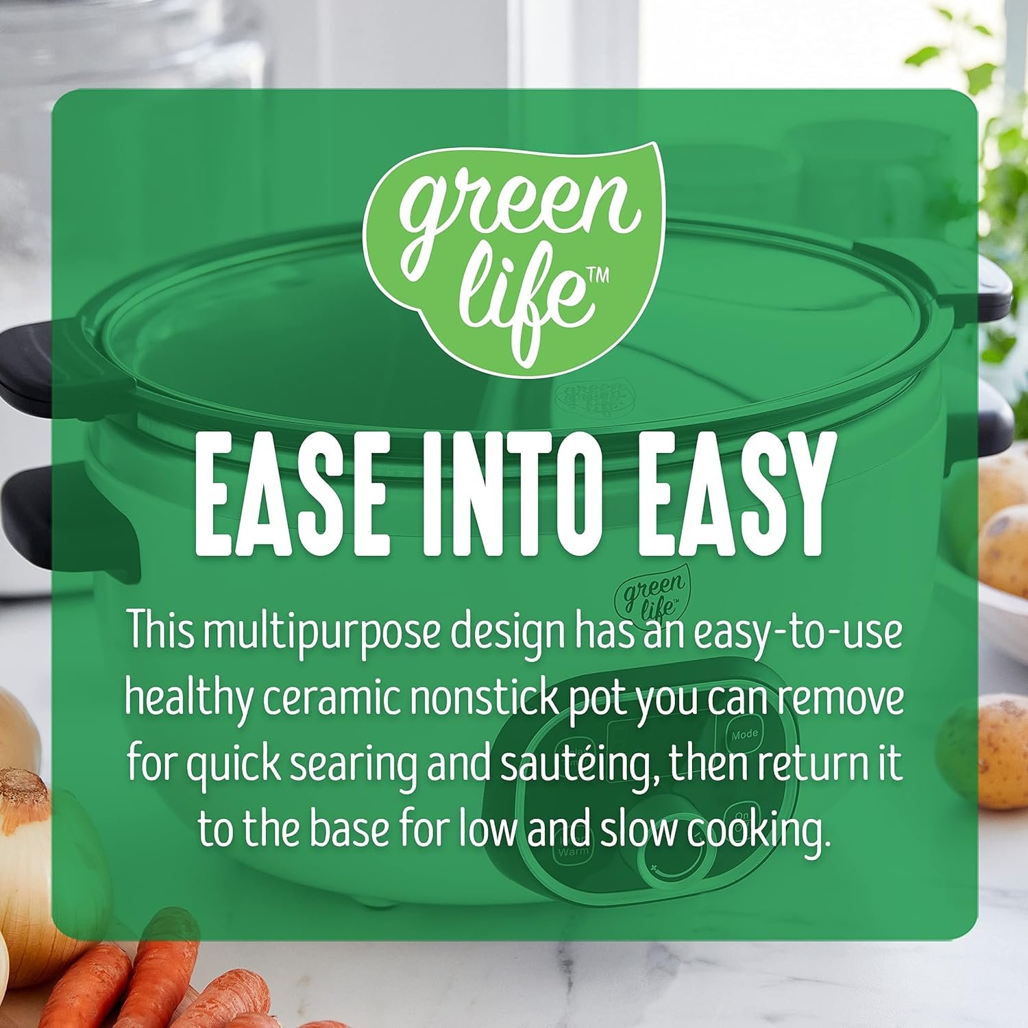 Save time when you go slow with the Healthy Cook Duo. This multipurpose slow cooker has an easy-to-use nonstick pot you can pop out for quick searing and sautéing, then just return it to the base to keep cooking low and slow. It’s the perfect way to infuse any meal with mouthwatering flavor. The extra deep 6QT pot features our healthy ceramic nonstick coating for effortless cleanup and fantastic performance. It’s also free of PFAS, PFOA, lead, and cadmium, so everything you make will be a little healthier. The easy-to-use control panel has five cooking functions to perfect your meal, whether you want to delay the start for a few hours or program the Healthy Cook Duo for up to 10 hours. Once your meal is finished, this slow cooker switches to the warm mode to keep your food ready for up to 4 hours. The lid and pot are dishwasher safe to make cleanup easy.