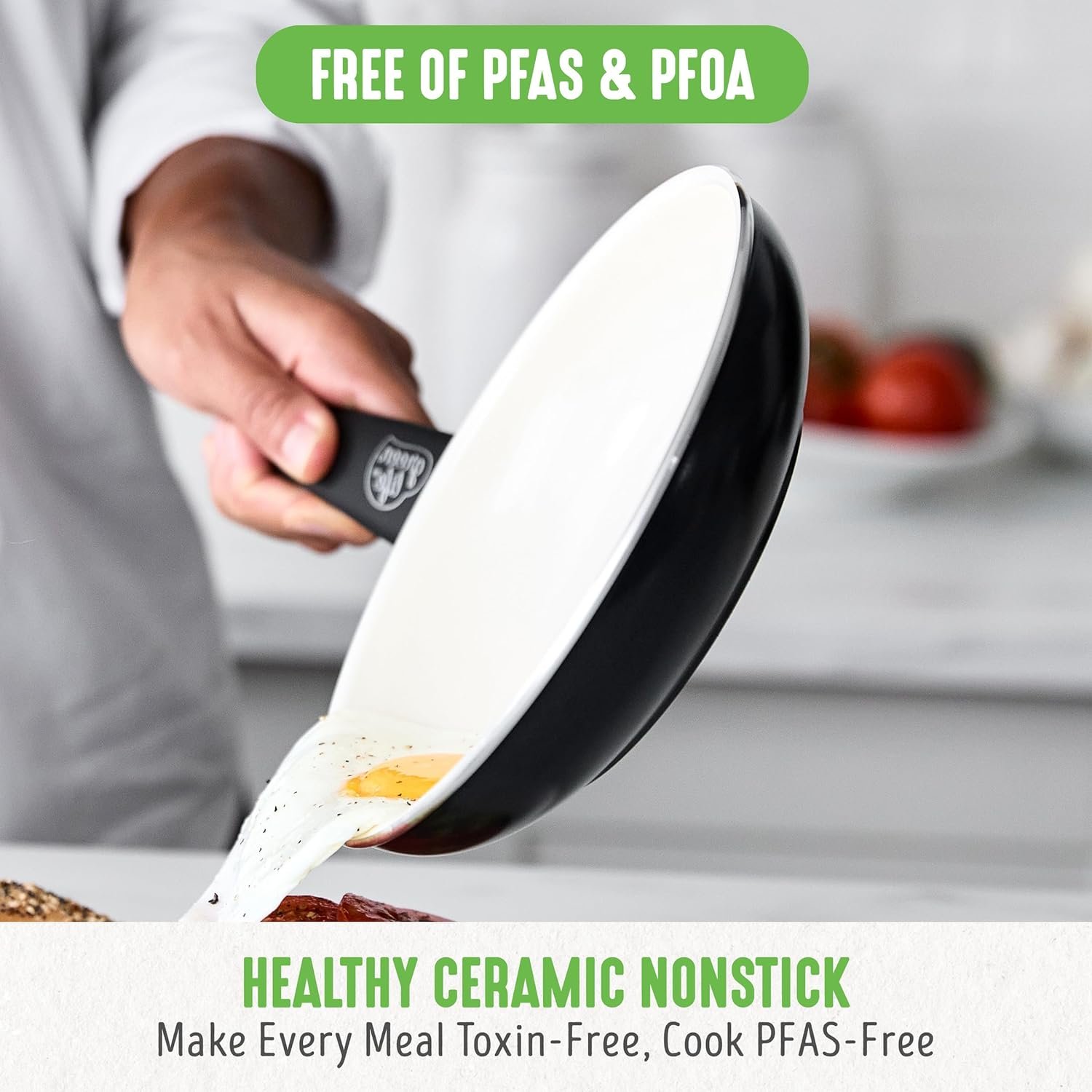 HEALTHY CERAMIC NONSTICK: Our healthy and easy-to-clean ceramic nonstick coating is derived from sand and delivers effortless release with quick cleanup