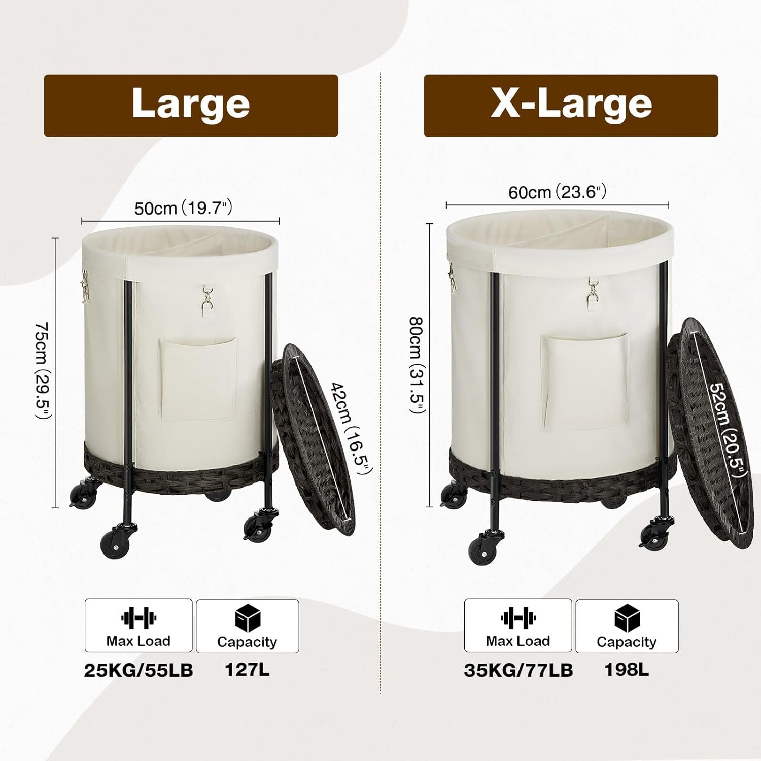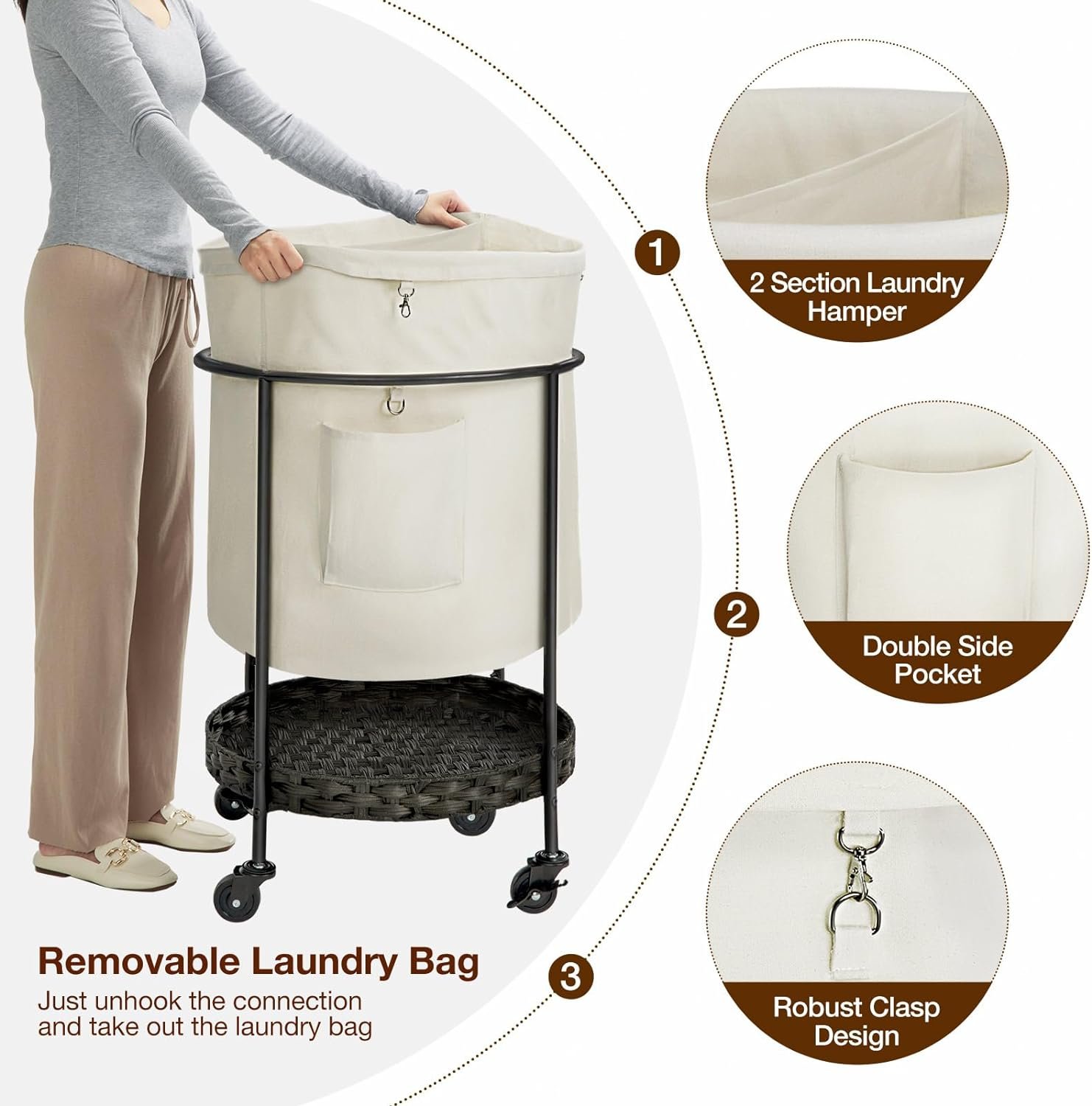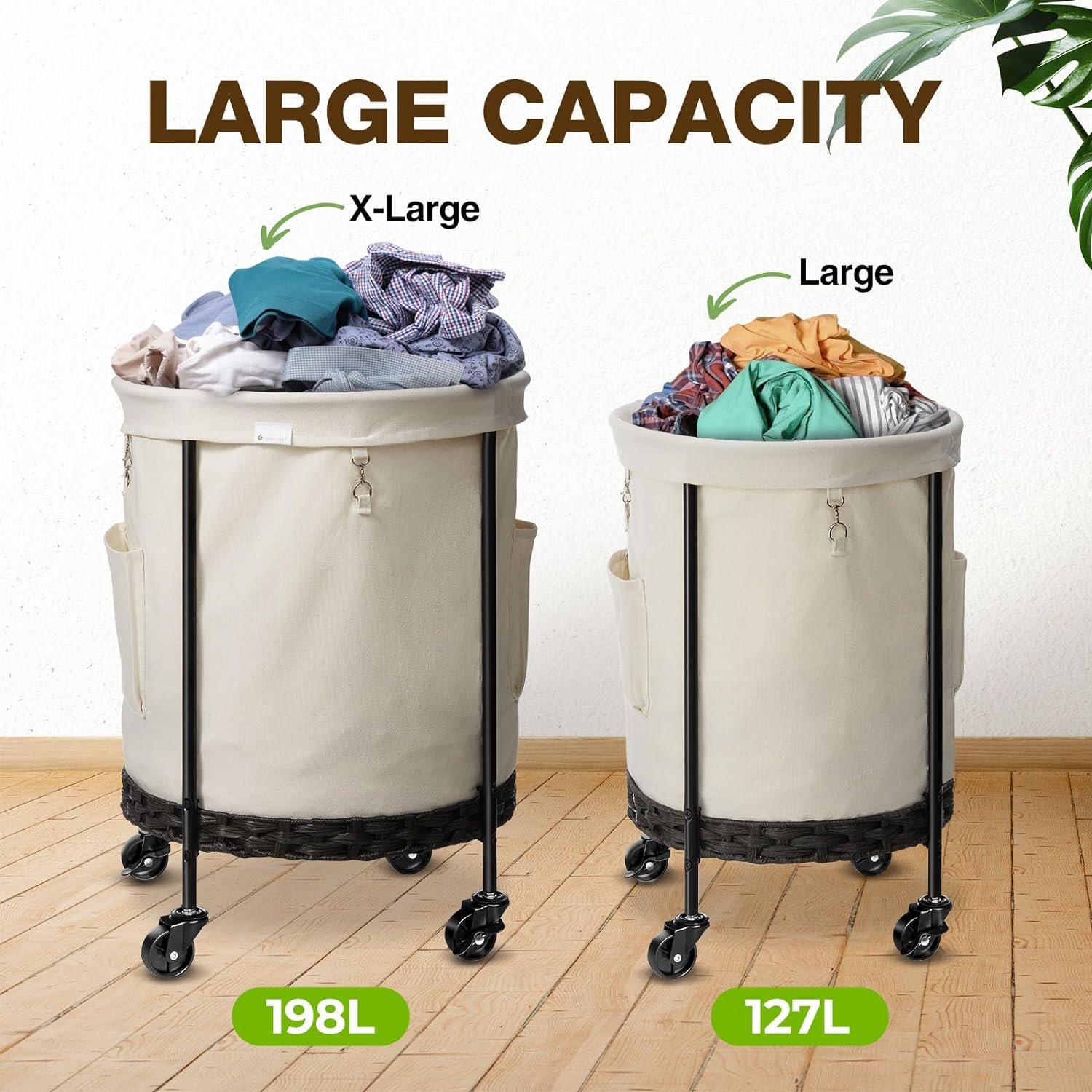 [Detachable & Washable Laundry Bag] The laundry bag is made with a high-quality stitching process. It can easily hold up to 198L of clothing, Simply unlatch the clasp and remove the laundry bag for easy washing