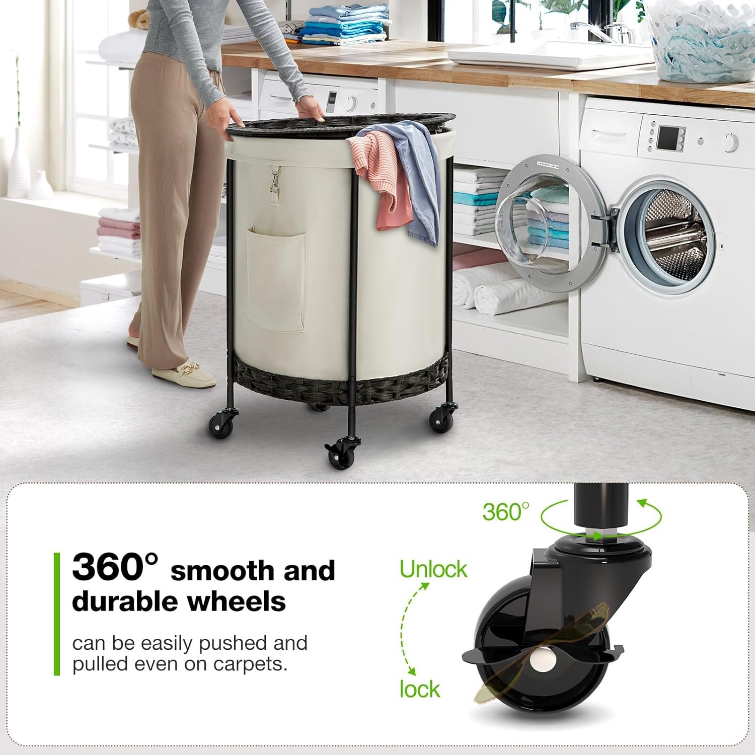 [Effortless Mobility & Secure Locking] With 4 casters (including 2 brakes), this laundry cart glides smoothly around your home and locks in place effortlessly. Plus, the wheels are crafted with safe, non-toxic soft rubber for added peace of mind