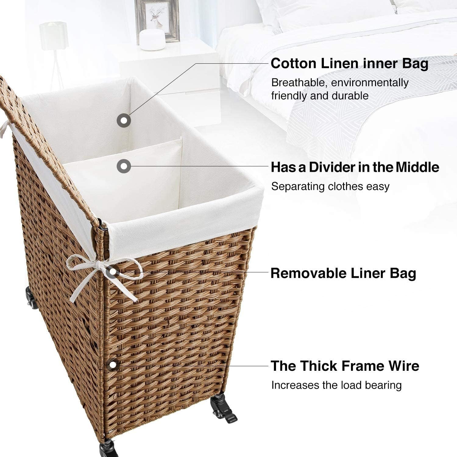 Perfect Storage – Divided laundry hamper makes sorting and organizing laundry simple and easy, the cloth lining is made with a high quality stitching process. we also provide a replacement cloth lining for your convenience