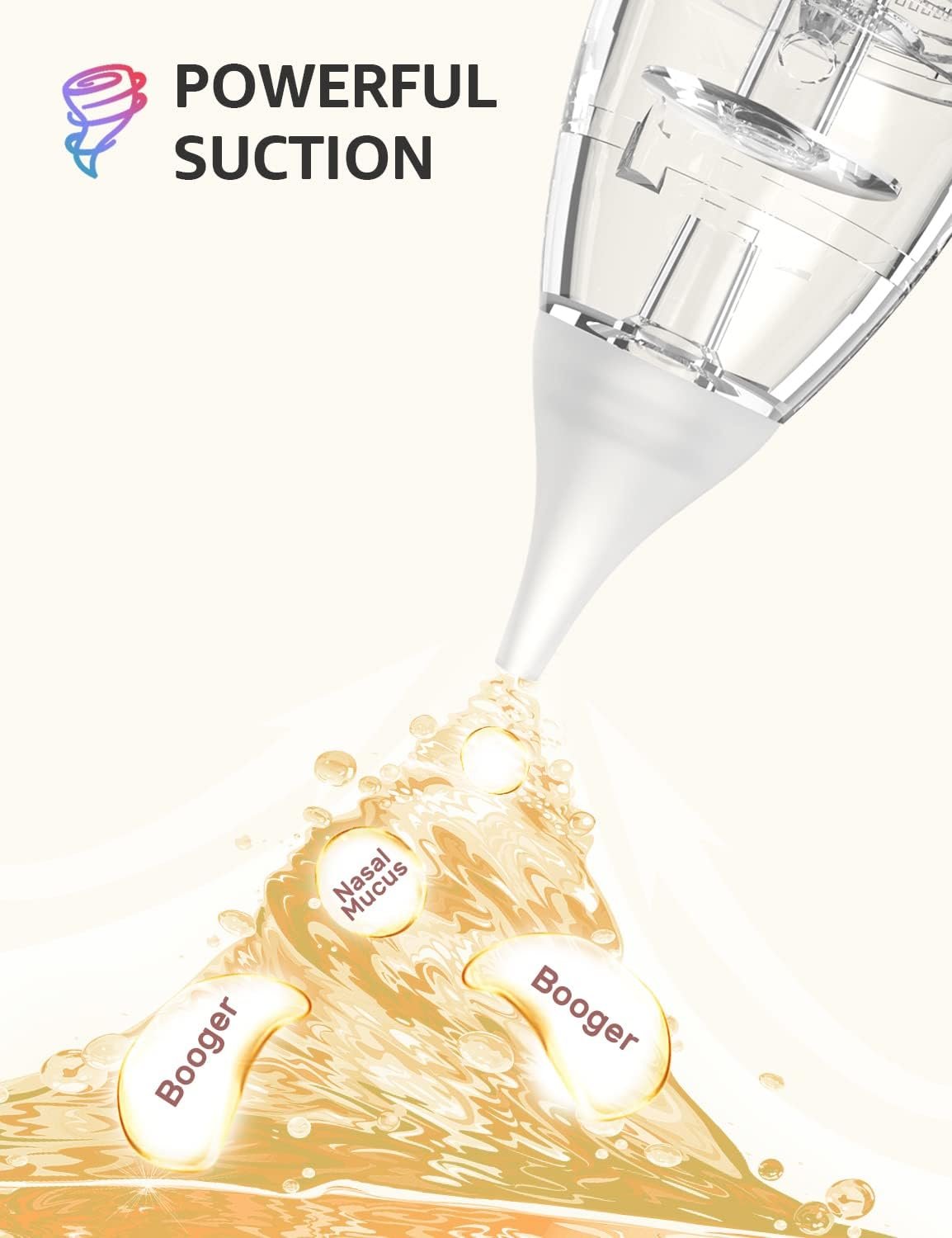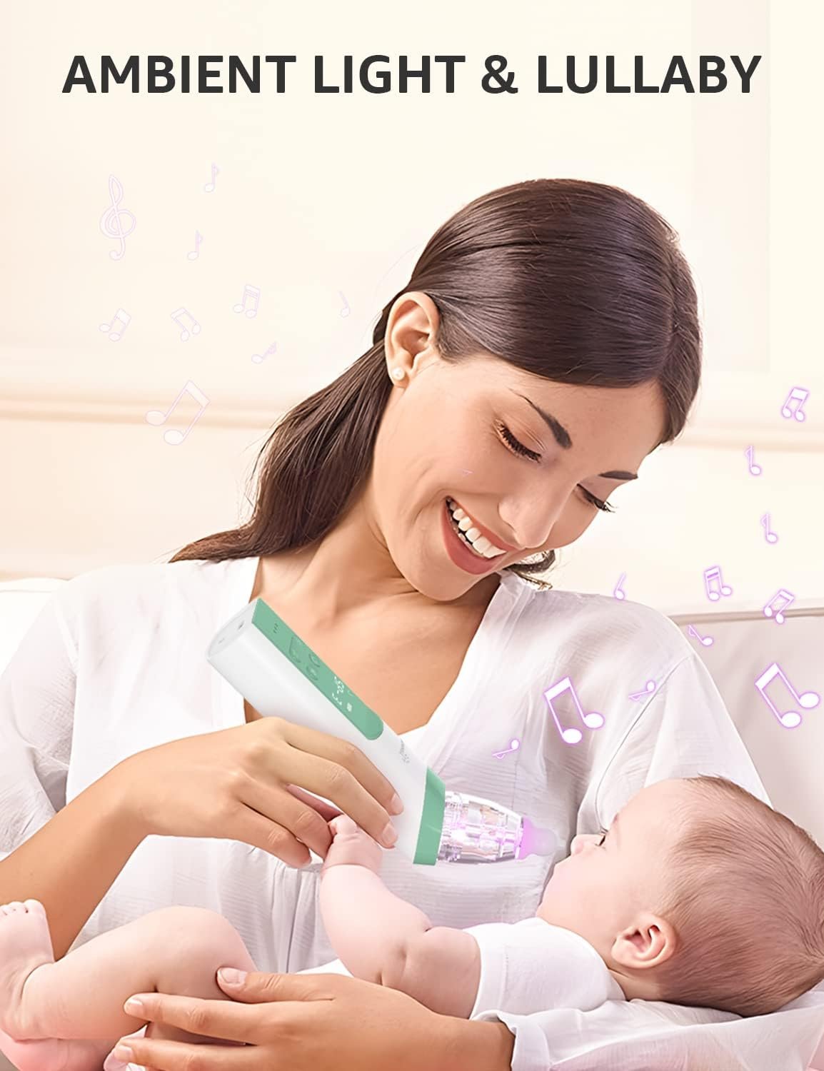 【𝐈𝐧𝐧𝐨𝐯𝐚𝐭𝐢𝐯𝐞 𝐃𝐞𝐬𝐢𝐠𝐧】We especially adopted light and music soothing function on the electric booger sucker, and with lower noise, which will make your baby enjoy this nose cleaning and make the cleaning progress easier and quicker.