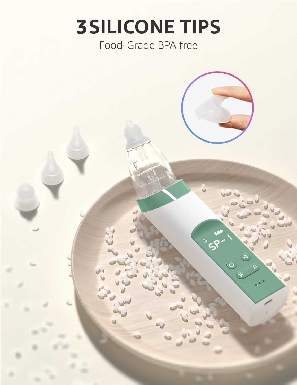 【𝐒𝐚𝐟𝐞𝐭𝐲 𝐚𝐧𝐝 𝐂𝐨𝐦𝐟𝐨𝐫𝐭】GROWNSY baby nose sucker is equipped with 3 tips from food-grade silicone, the soft and flexible material ensures it is gentle on your baby’s sensitive inner surfaces of the little noses.