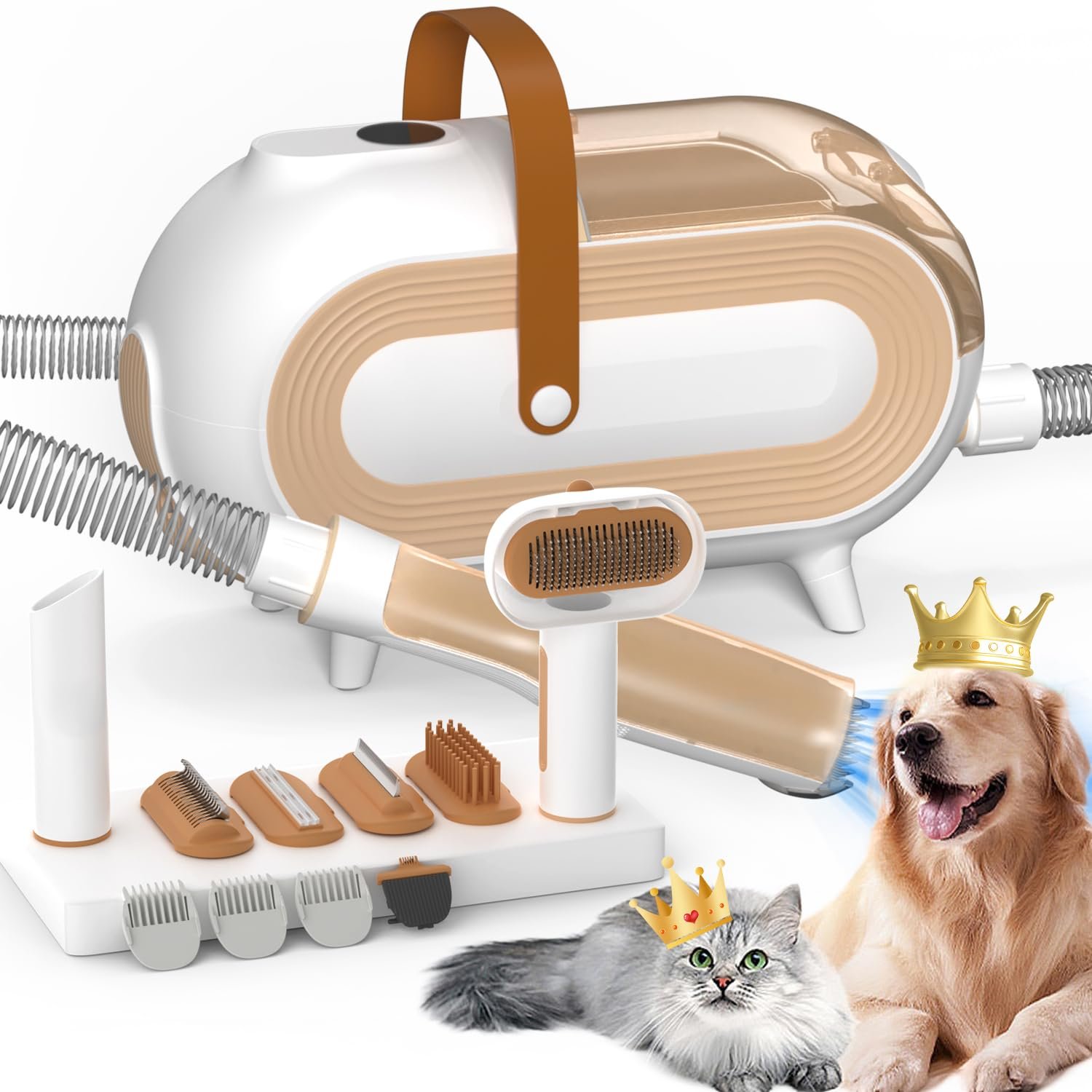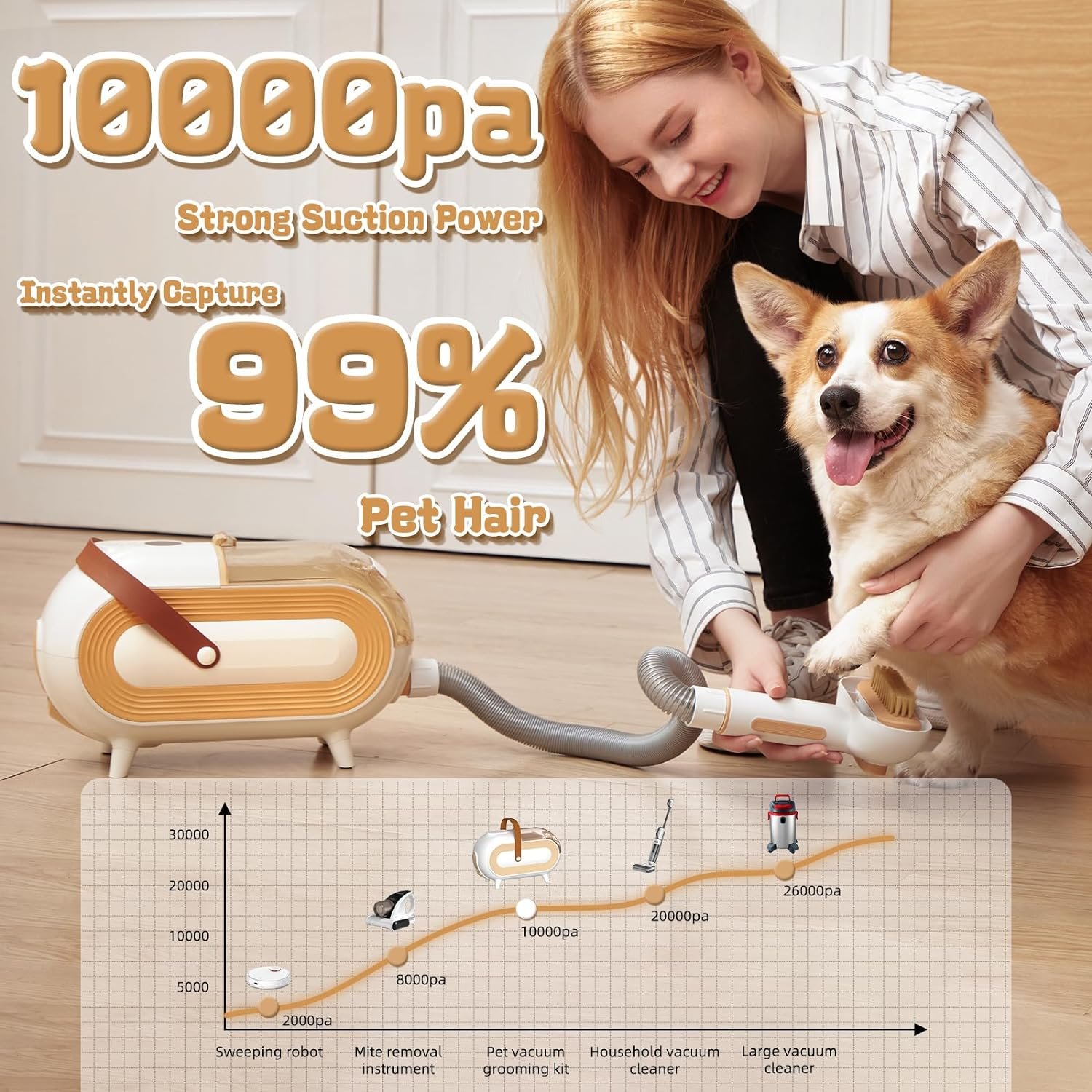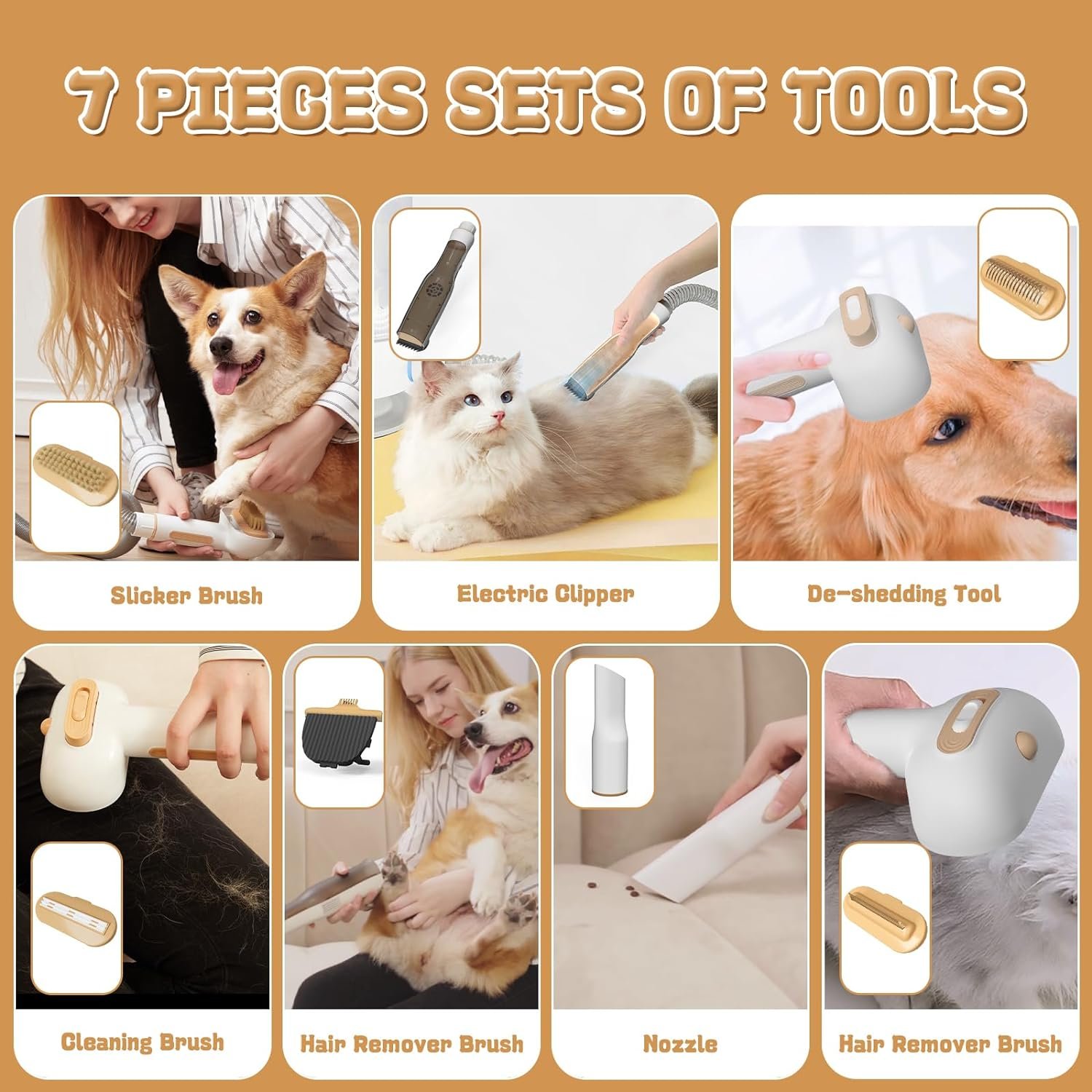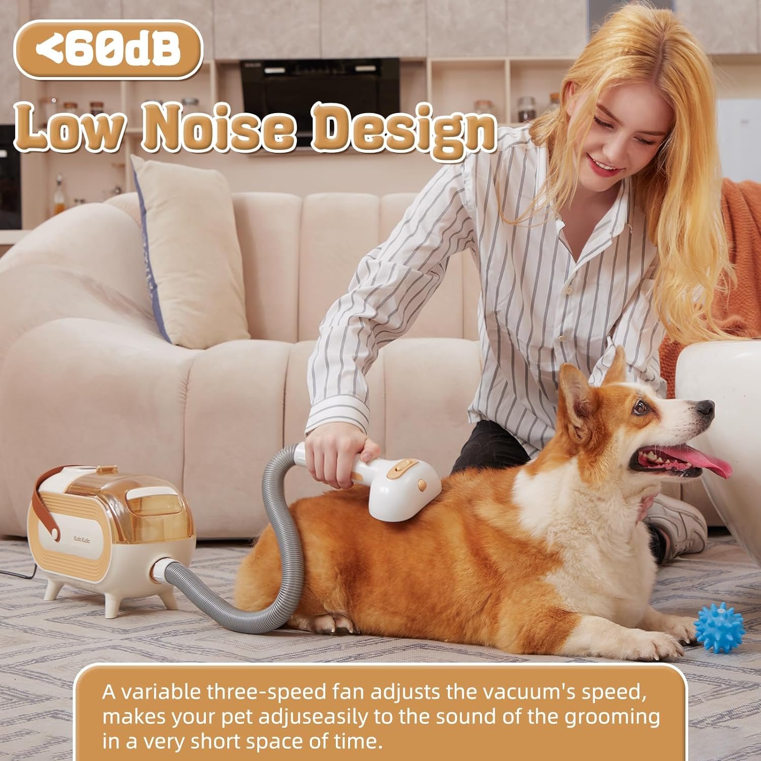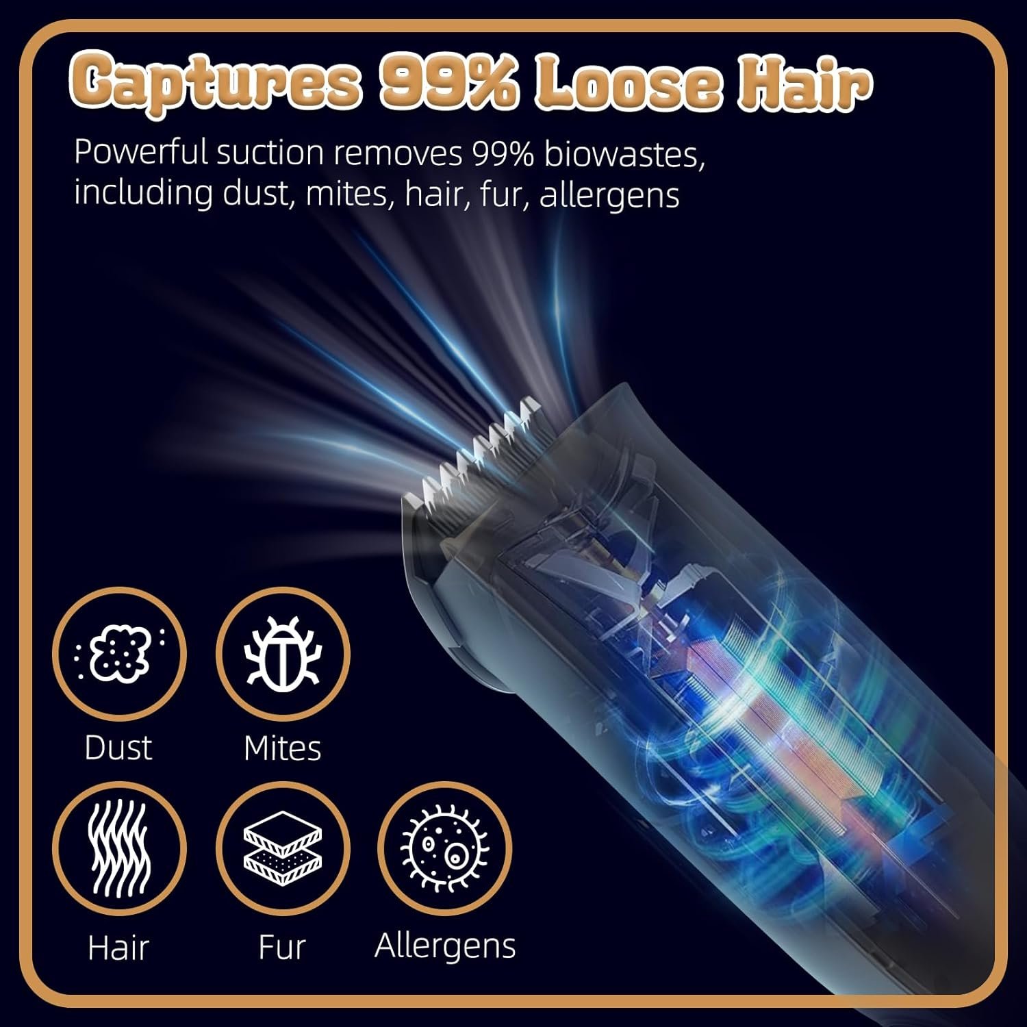 🐶【Versatile and Easy to Use】Our grooming kit comes with 12-in-1 grooming vacuum attachments and accessories to cater to different pet breeds and coat types. The attached hair clipper with 4 electric protective combs for haircuts, and grooming brush gently combs through your pet’s coat, effectively removing loose hair. The nozzle head and vacuum can help you clean pet hair like having a professional groomer at your fingertips!