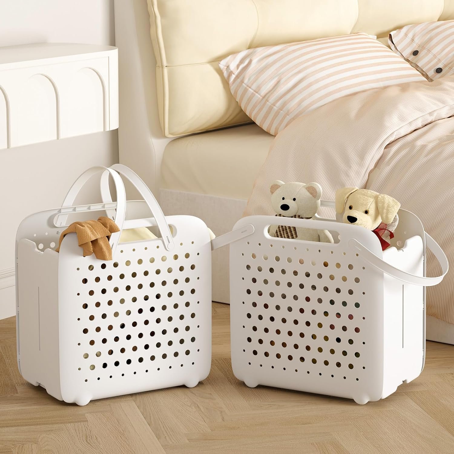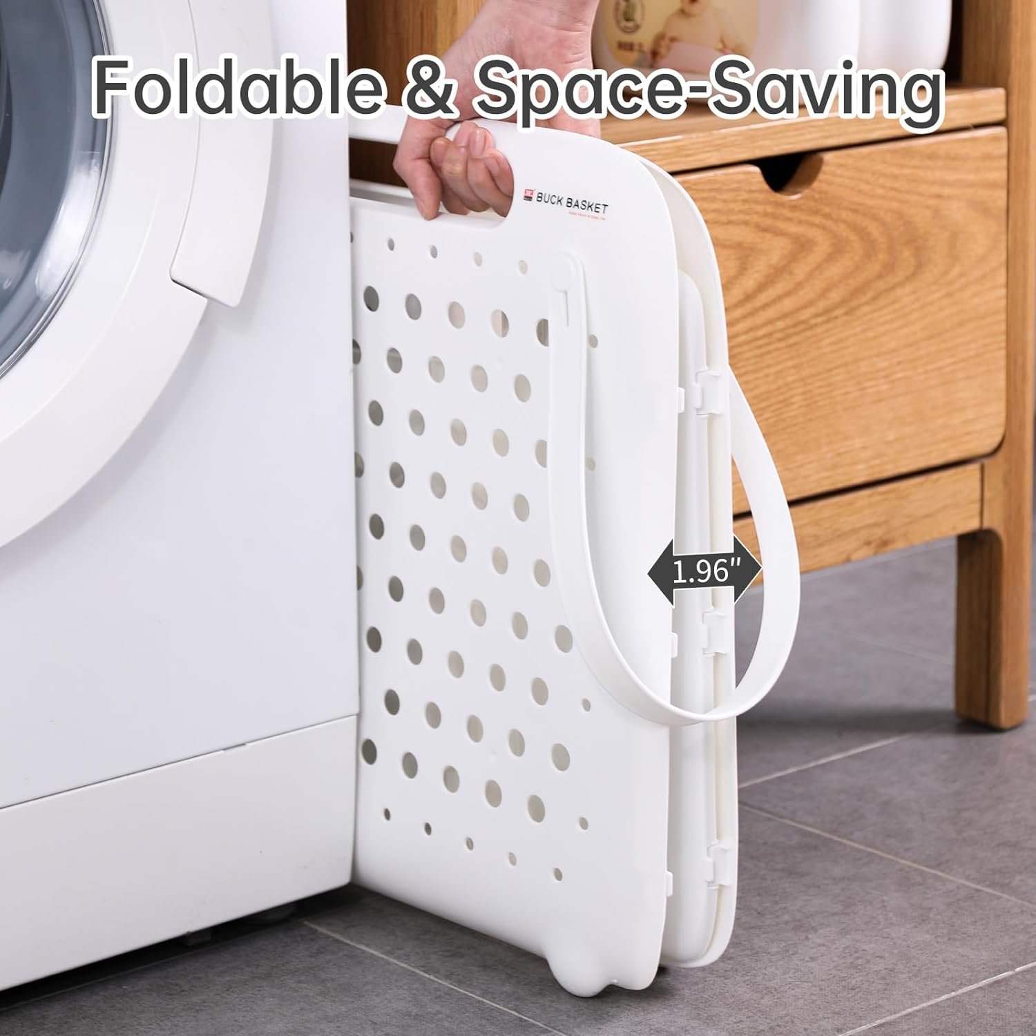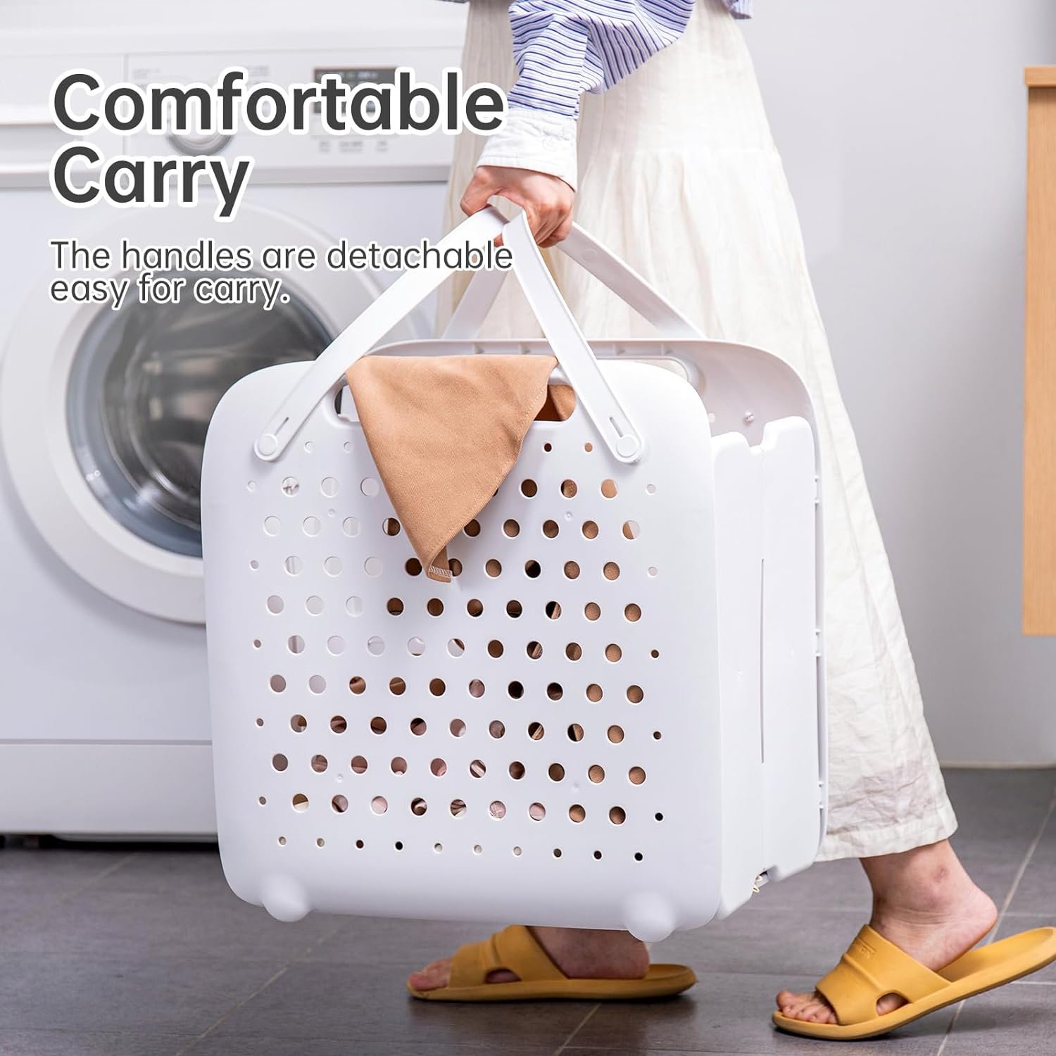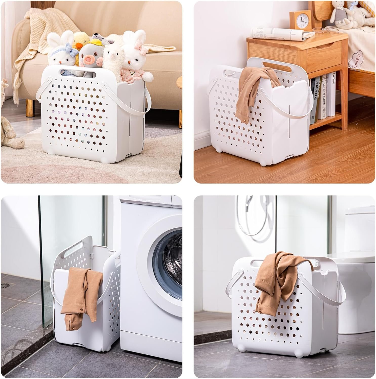【Collapsible & Space-saving】The plastic basket is collapsible, easy to unfold. When not in use, the hamper can also be folded and stored to save space.