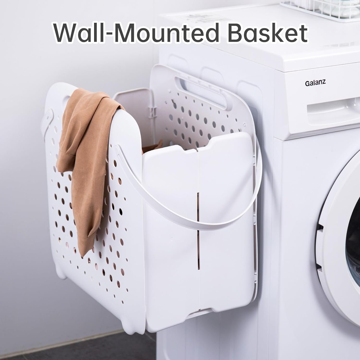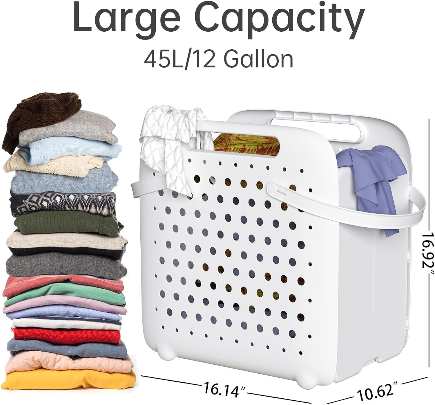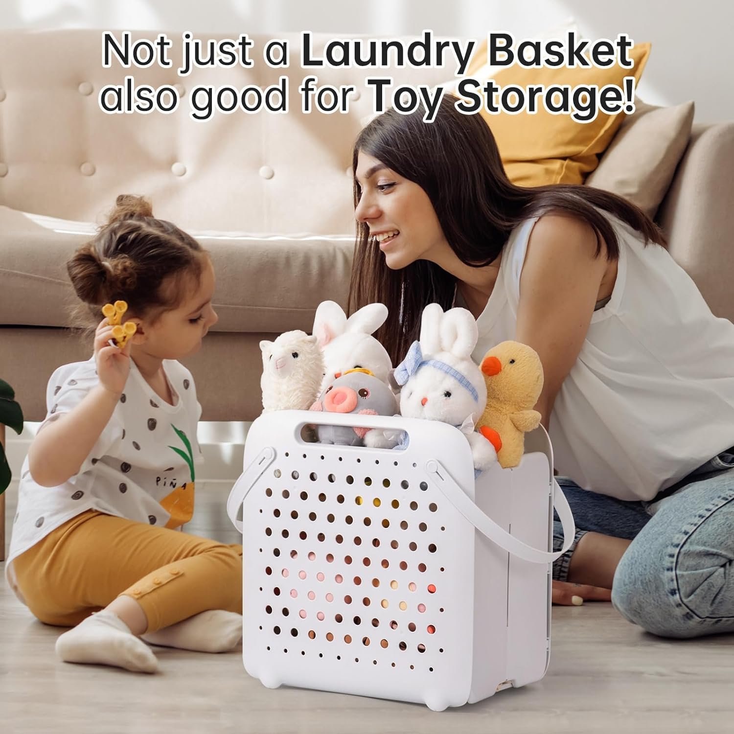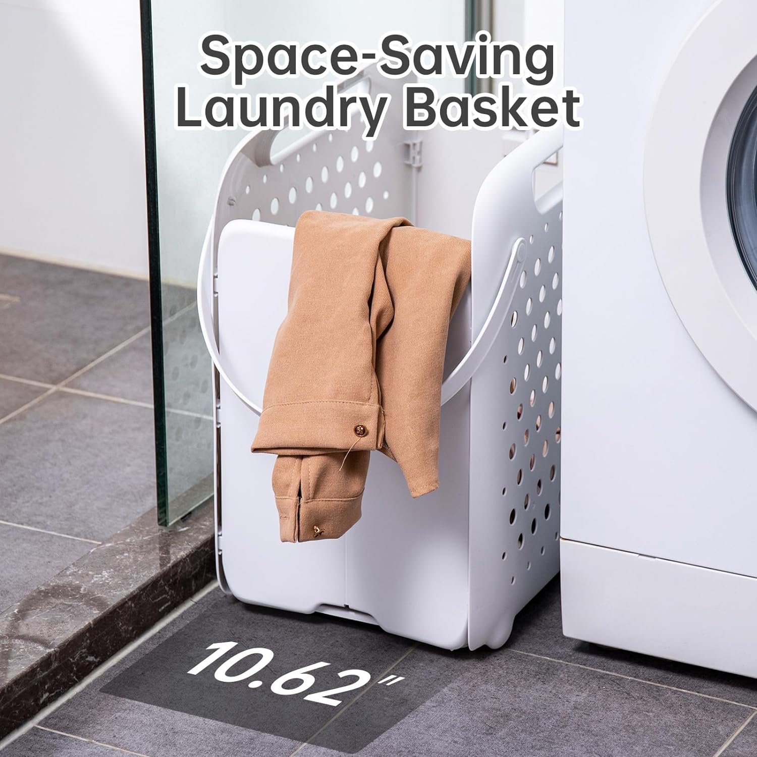 【Collapsible & Space-saving】The plastic basket is collapsible, easy to unfold. When not in use, the hamper can also be folded and stored to save space.