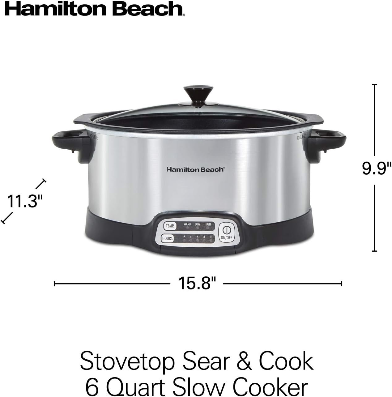 Sear right on your stovetop, then finish the meal in your slow cooker. The Hamilton Beach Stovetop Sear & Cook Slow Cooker has flexible programming with 15 heating options.