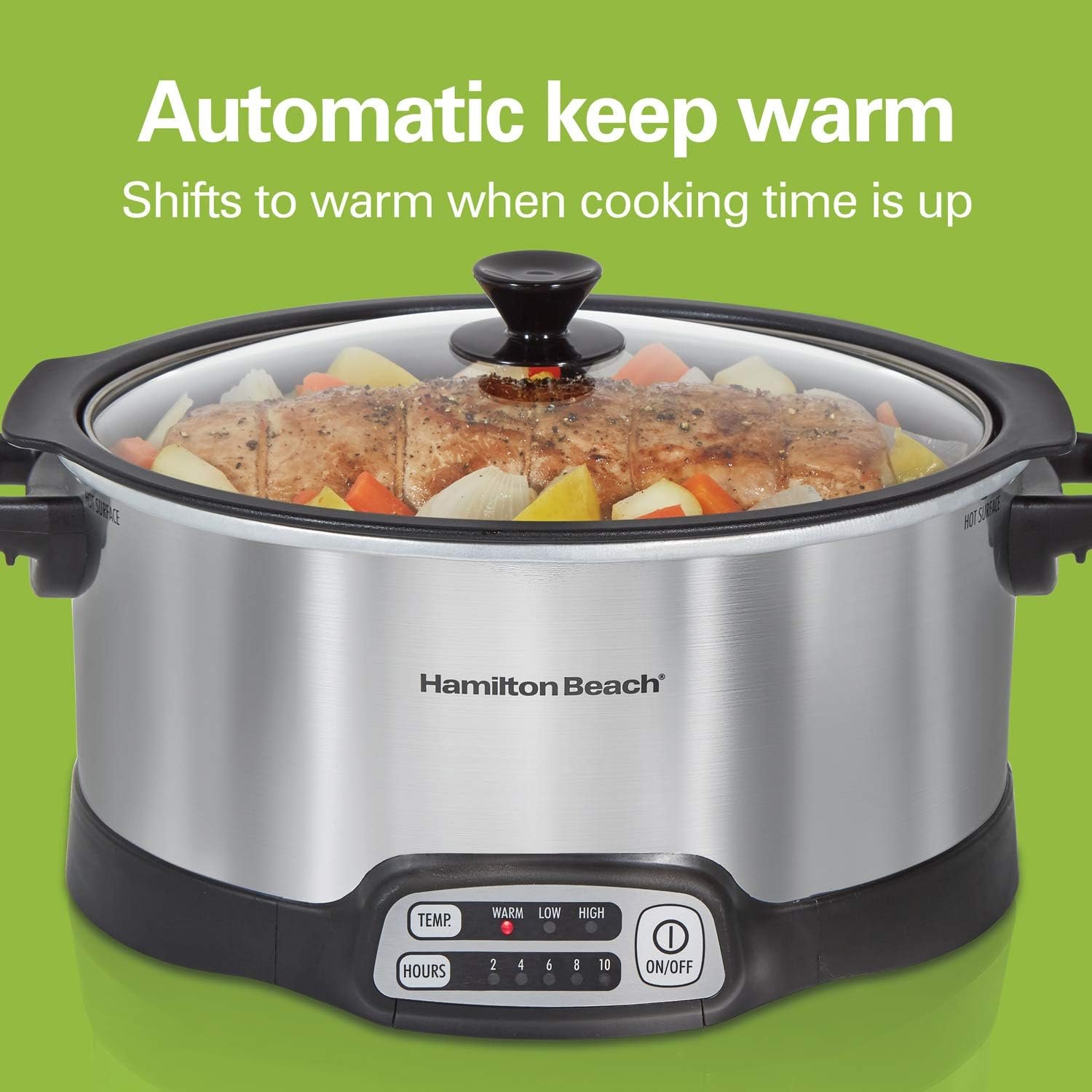 Hamilton Beach 33662 Programmable Slow Cooker with 6 Quart Stovetop-Safe Sear & Cook Crock, Silver