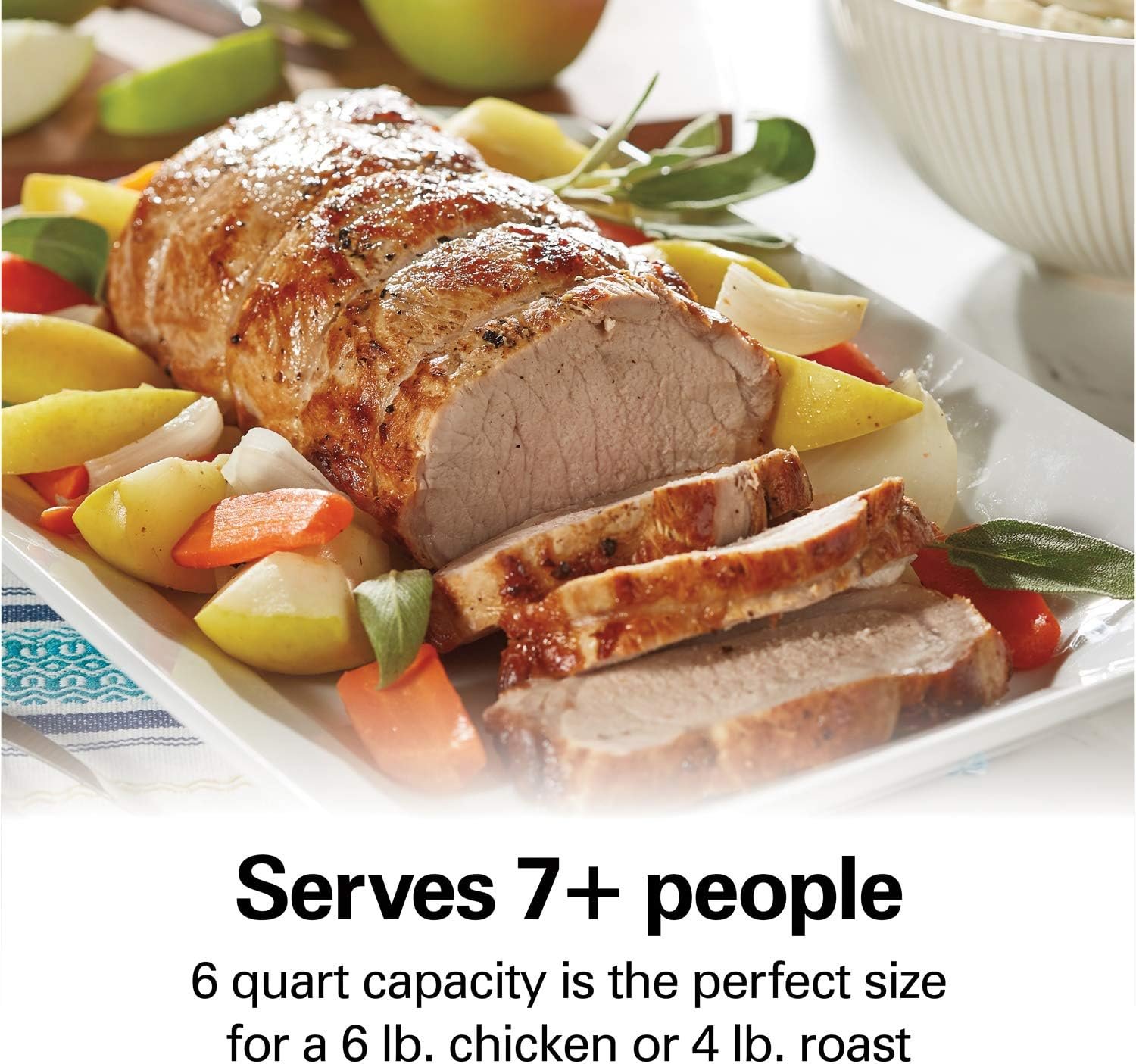 SERVES 7+ PEOPLE: This programmable slow cooker’s 6 quart capacity is the perfect size for a 6 lb. chicken or 4 lb. roast. Cook a hearty meal for the whole family or serve a delicious main dish on your buffet for the holidays.