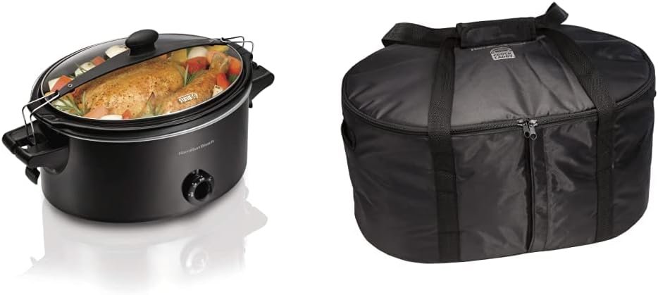 The insulated travel bag keeps food warm and fits most 4-8 quart slow cookers with a mesh net to secure smaller ones.