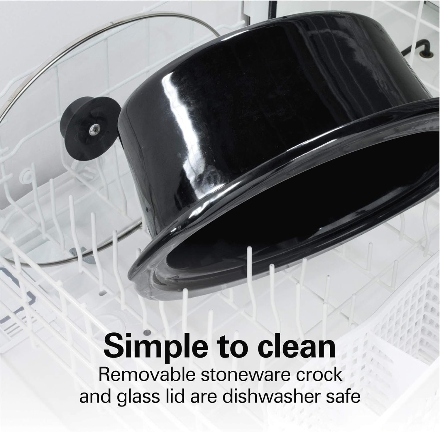 SIMPLE TO CLEAN: This slow cooker has a removable stoneware crock and glass lid that are dishwasher safe and easy to clean.