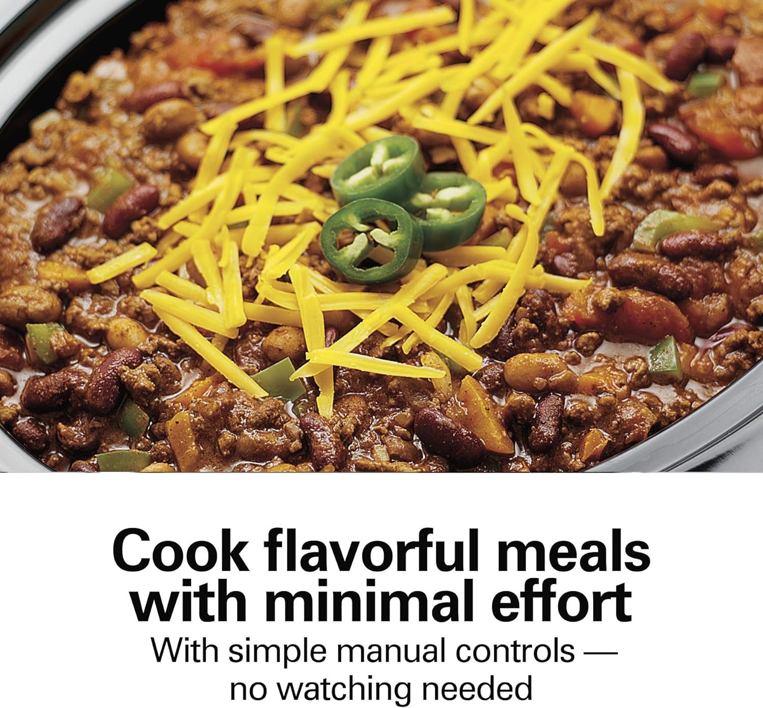 COOK FLAVORFUL MEALS WITH MINIMAL EFFORT: This Hamilton Beach slow cooker has simple controls that make it easy for you to create flavorful meals with minimal effort and great results. Just turn the dial. No watching needed.