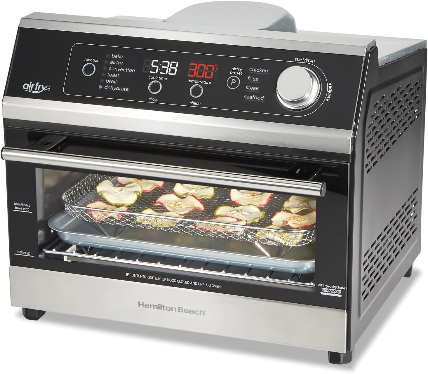The Hamilton Beach Digital Air Fryer Toaster Oven has 1800 watts to powerfully circulate air around foods for faster cooking. Cook an entire meal in less than 20 minutes. This multifunction oven air fries, bakes, broils, toasts, dehydrates and more.