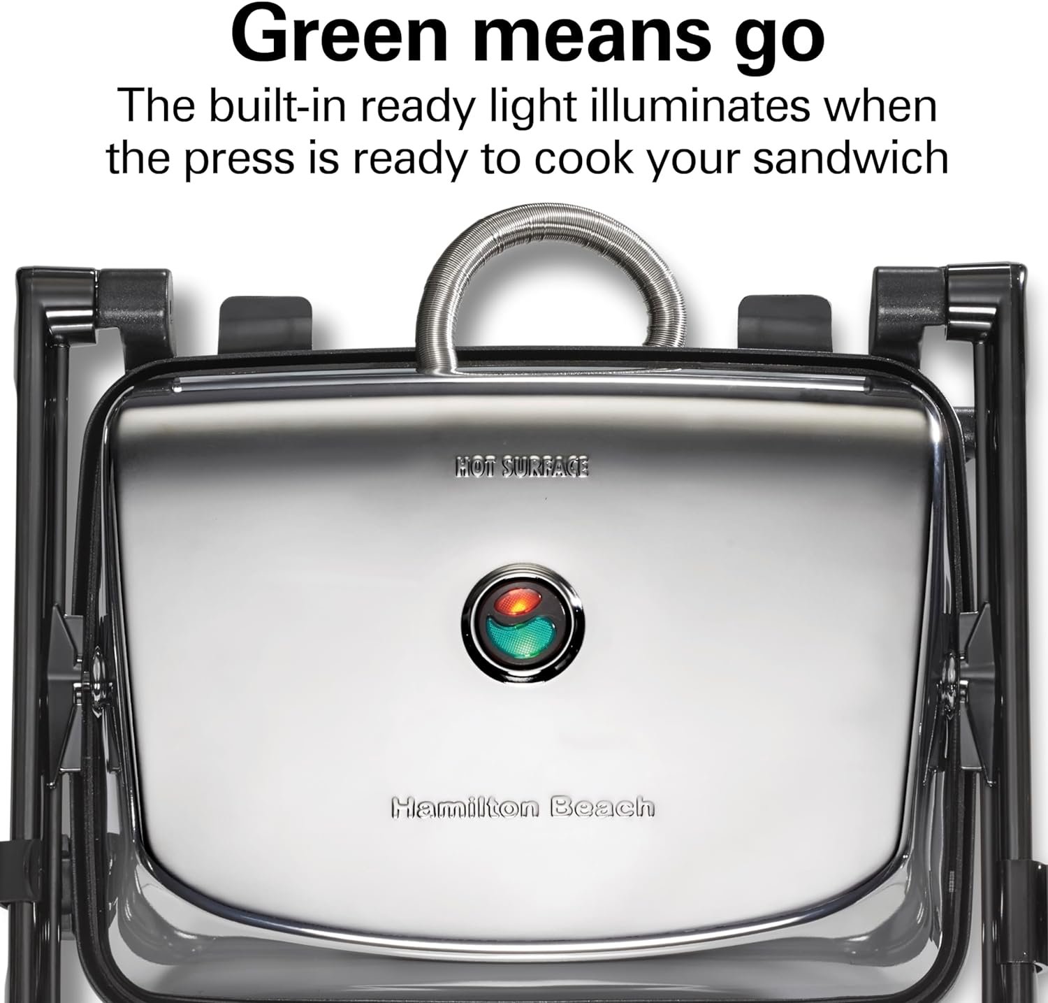 GREEN MEANS GO: For best results, preheat sandwich maker 6 minutes before use. Built-in ready light will turn green when the press is ready to cook your sandwich.