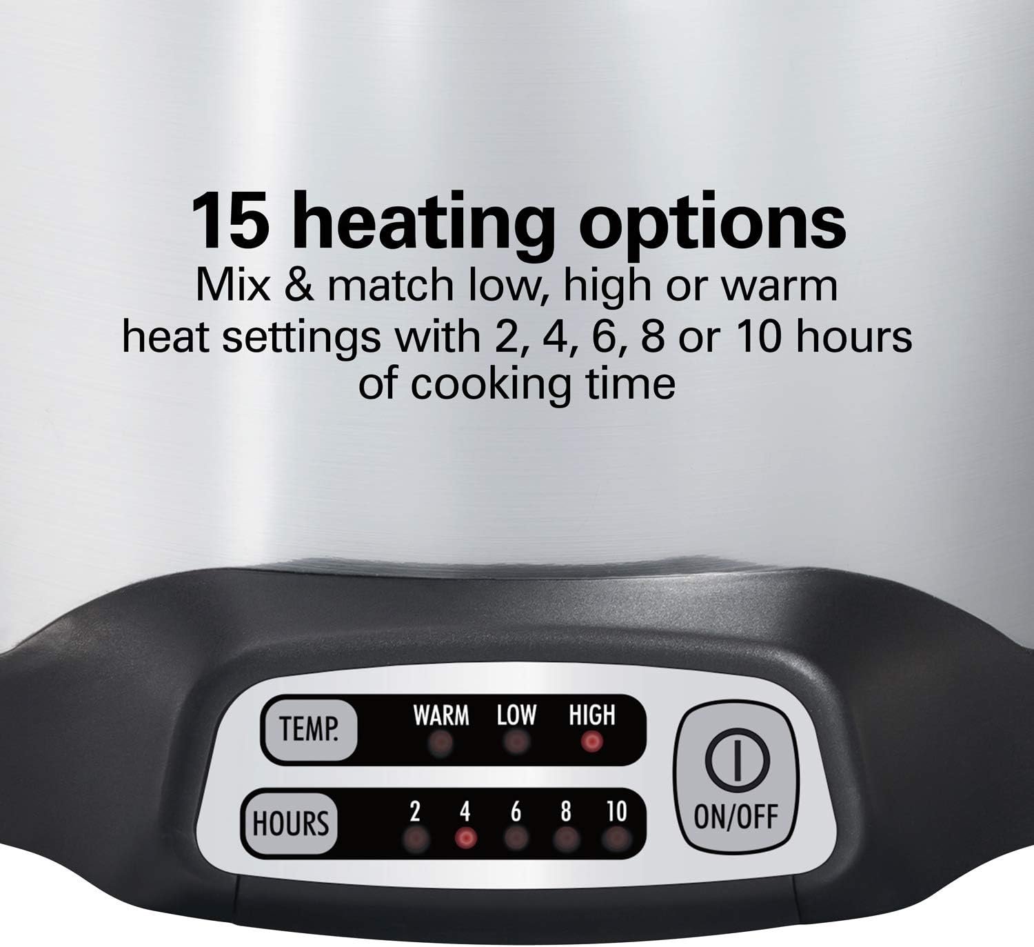 15 HEATING OPTIONS: This programmable slow cooker lets you mix and match high, low or warm heat settings with your choice of 2, 4, 6, 8 or 10 hours of cooking time.