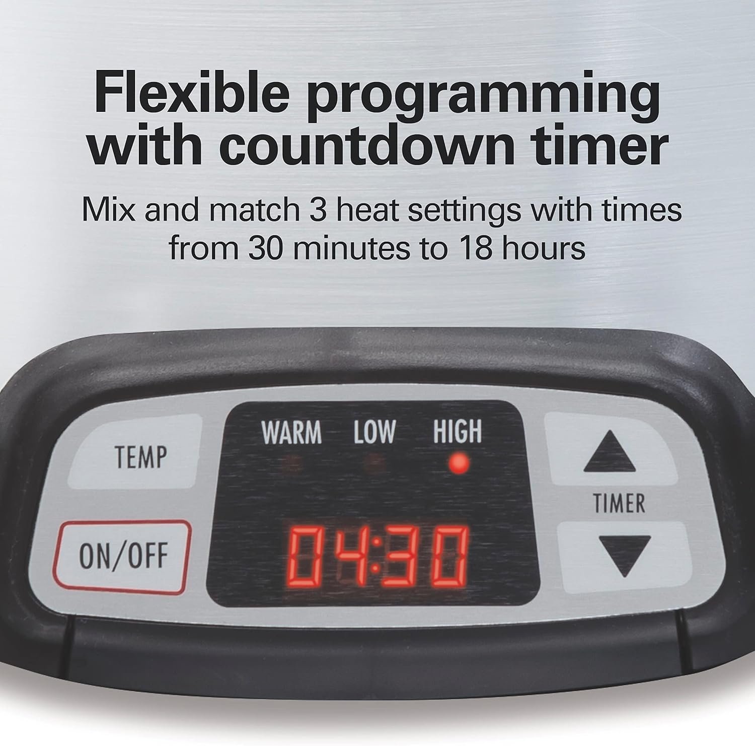 Hamilton Beach 8 Quart Programmable Slow Cooker with Three Temperature Settings, Dishwasher Safe Crock and Lid, Silver (33480)