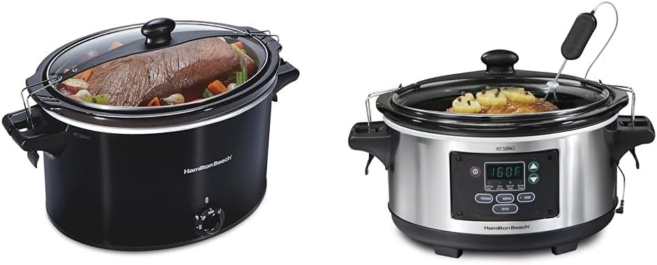 Product 1: COOK FLAVORFUL MEALS WITH MINIMAL EFFORT: This Hamilton Beach slow cooker has simple controls that make it easy for you to create flavorful meals with minimal effort and great results. Just turn the dial. No watching needed.