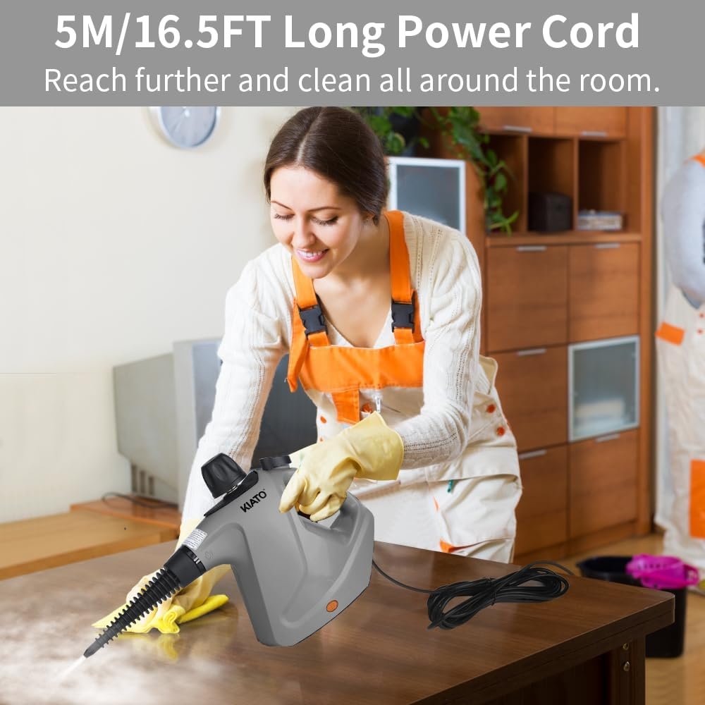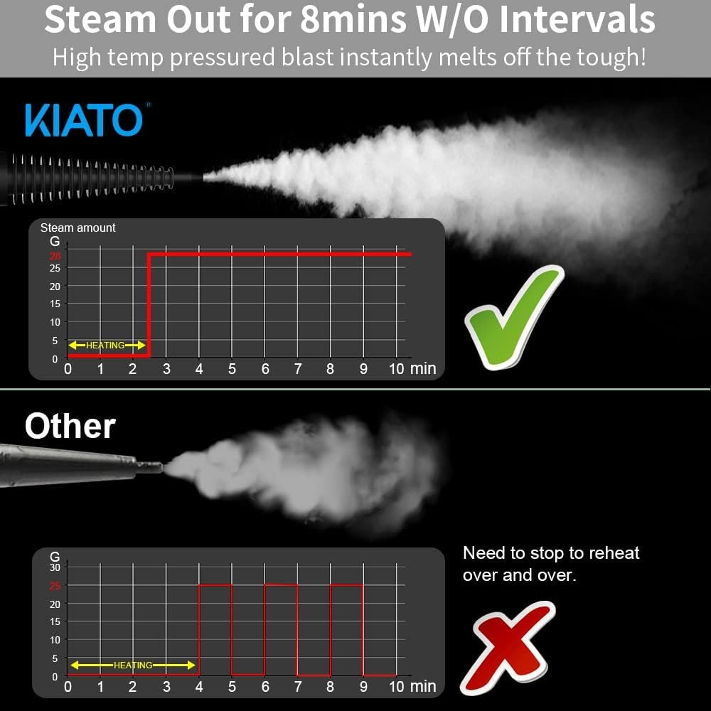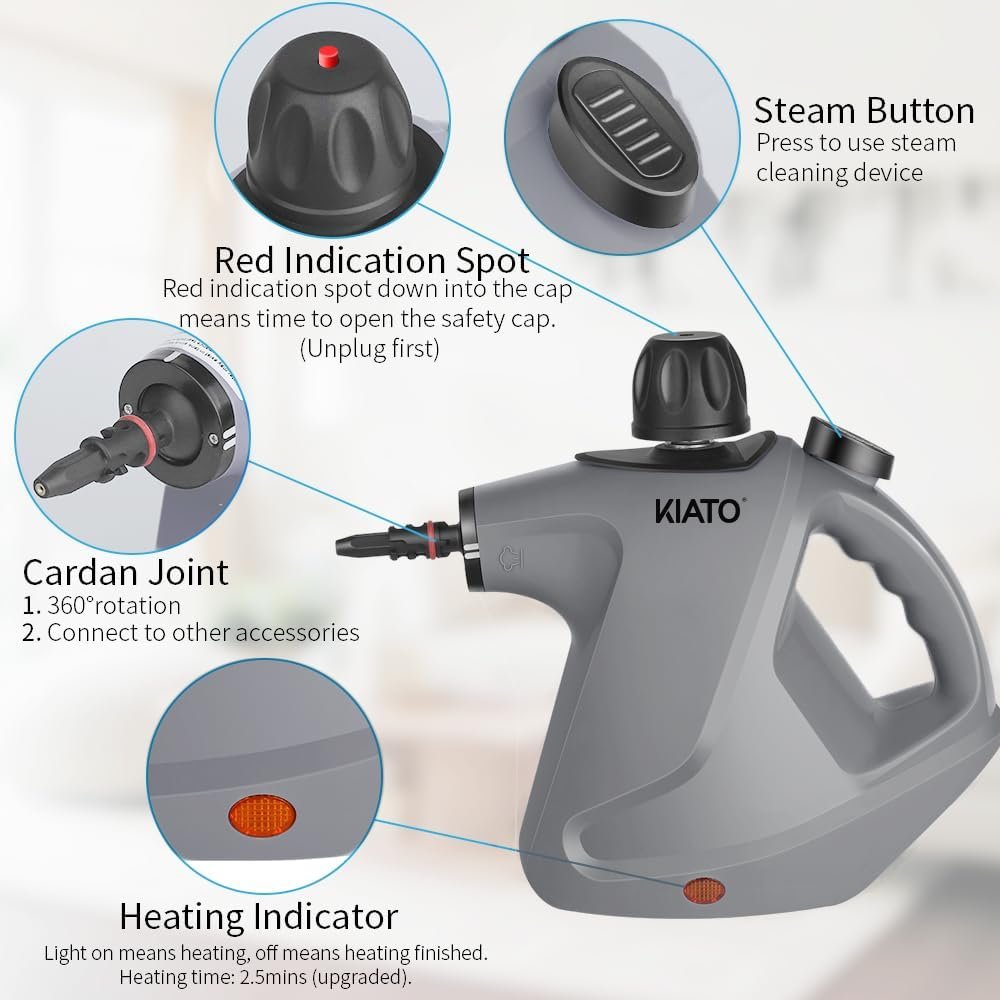 ใ๐ฃ๐ผ๐๐ฒ๐ฟ๐ณ๐๐น๐น๐ ๐๐น๐ฒ๐ฎ๐ป ๐๐ต๐ฒ ๐ง๐ผ๐๐ด๐ต๐ฒ๐๐ใKiato handheld steam cleaner, working over 1050-1150 watts, can emit 105โ(221โ)high pressured flow of steam that is excessively powerful to deeply clean and make things in your home โnewโ again with no effort. Aim this upholstery cleaner at stain,grime, even the hard gooey spots that regular cleaning cannot dissolve, it melts right off, the only thing you need to do is to gently wipe up the leftover and then done!
