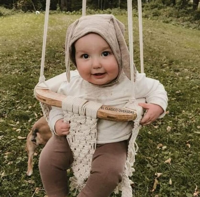About this item 100 % ORGANIC COTTON AND NO PLASTIC INDOOR/ OUTDOOR APPROPRIATE FOR BABIES AND TODDLERS UPTO 50 LBS MACRAME BELT TO KEEP BABY SAFE AND IN PLACE ADORABLE FRINGE EMBELLISHMENT