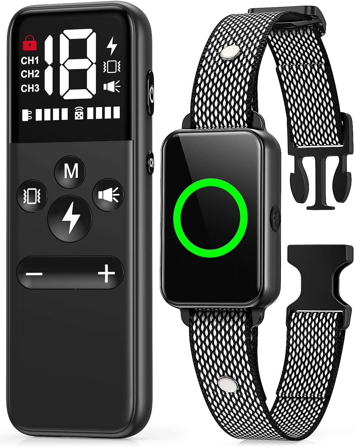 【Effective & Humane Dog Training Collar】Haoteful dog shock collar with remote is an effective and humane way to train your furry friend. With 3 safe options to choose from, including a beep, vibration (level 1-8), and static shock (level 0-18), you can select the right level of stimulation to correct bad behavior or teach commands. Plus, our upgraded chip ensures lightning-quick responses from your dog, with no delays.