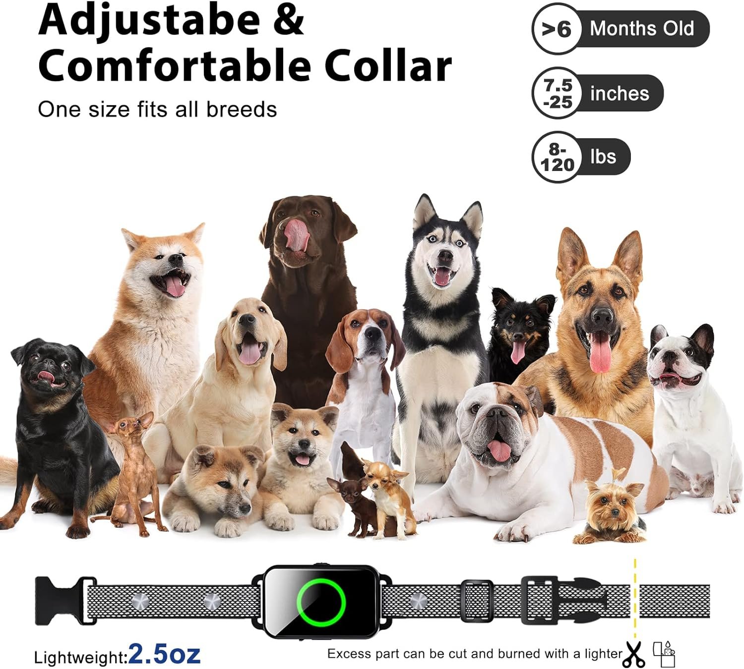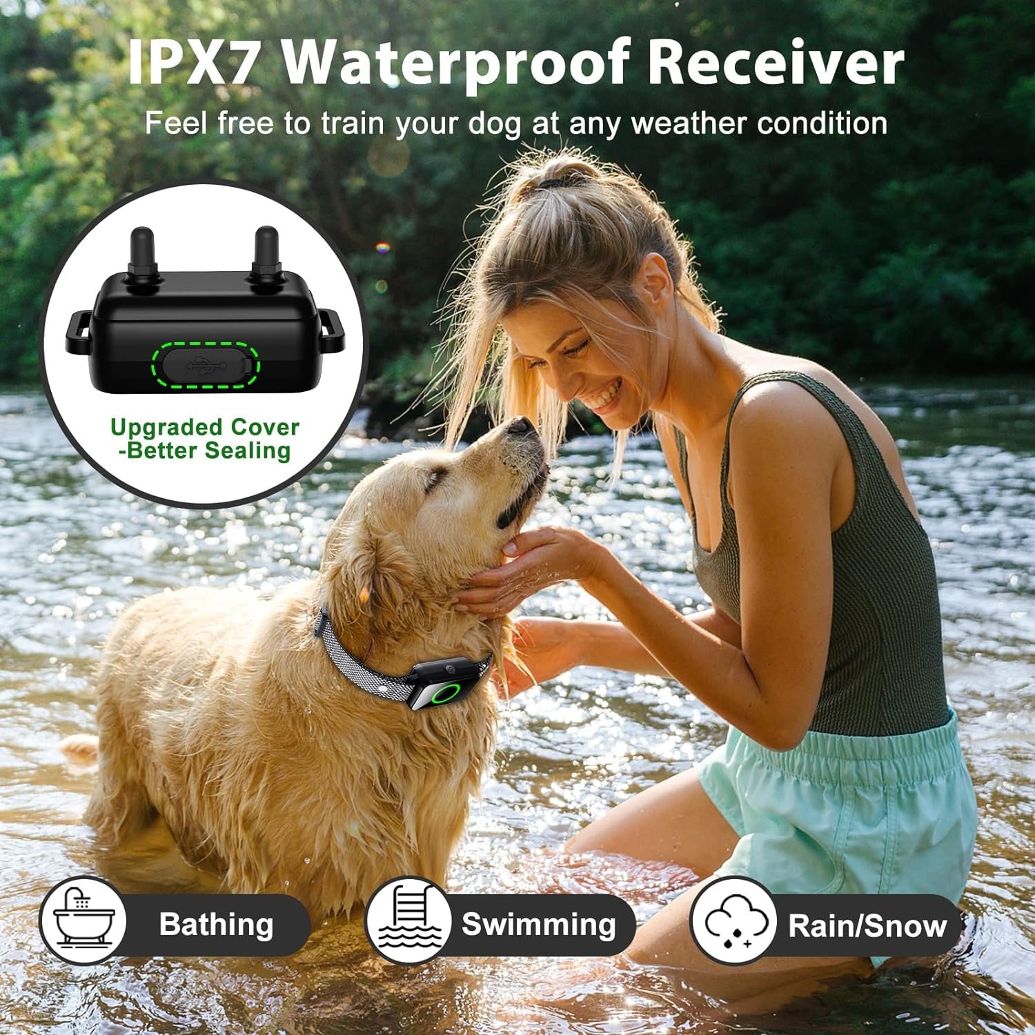 【100% Waterproof Receiver & Skin-friendly Collar】The IPX7 waterproof receiver on our dog training collar makes it perfect for use in any weather condition, including rain, snow, or even during your pup’s bath time. Plus, our dog shock collar is comfortable and adjustable for dogs of all sizes: large dog, medium dogs and small dogs with weight 10-120lbs and neck sizes ranging from 7.5 to 25 inches.